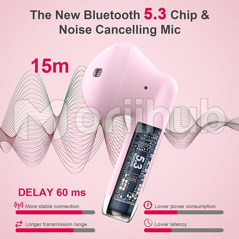 Bluetooth 5.3, effortless pairing: the advanced Bluetooth 5.3 technology delivers a stable, low-latency wireless connection for high-quality sound(music or call). Also, the Bluetooth earbuds can connect automatically to the Bluetooth of your mobile phone when you open the charging box, avoiding complicated operations and saving waiting time.