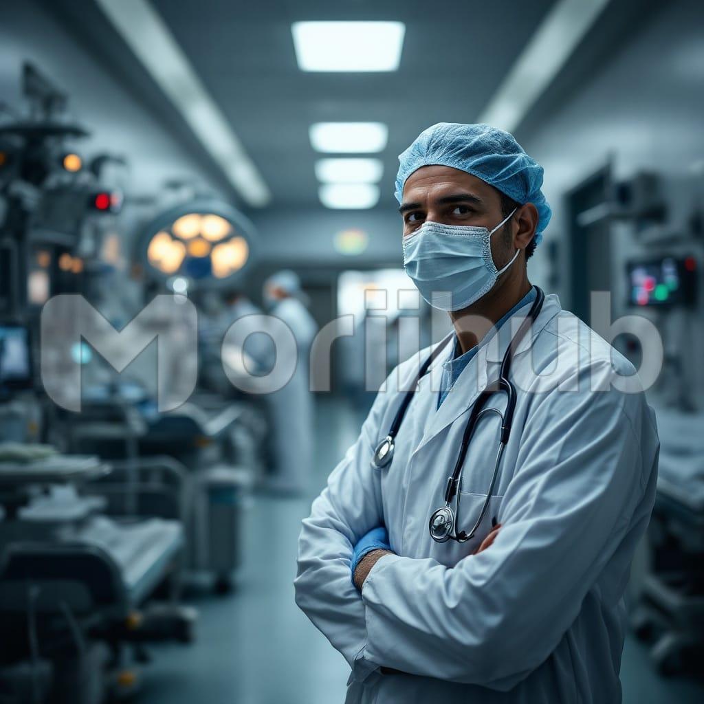 A doctor in a hospital ward, showcasing professionalism and compassion, listens attentively to a patient. Wearing a white coat and a warm expression, they provide care in a calm, healing environment.