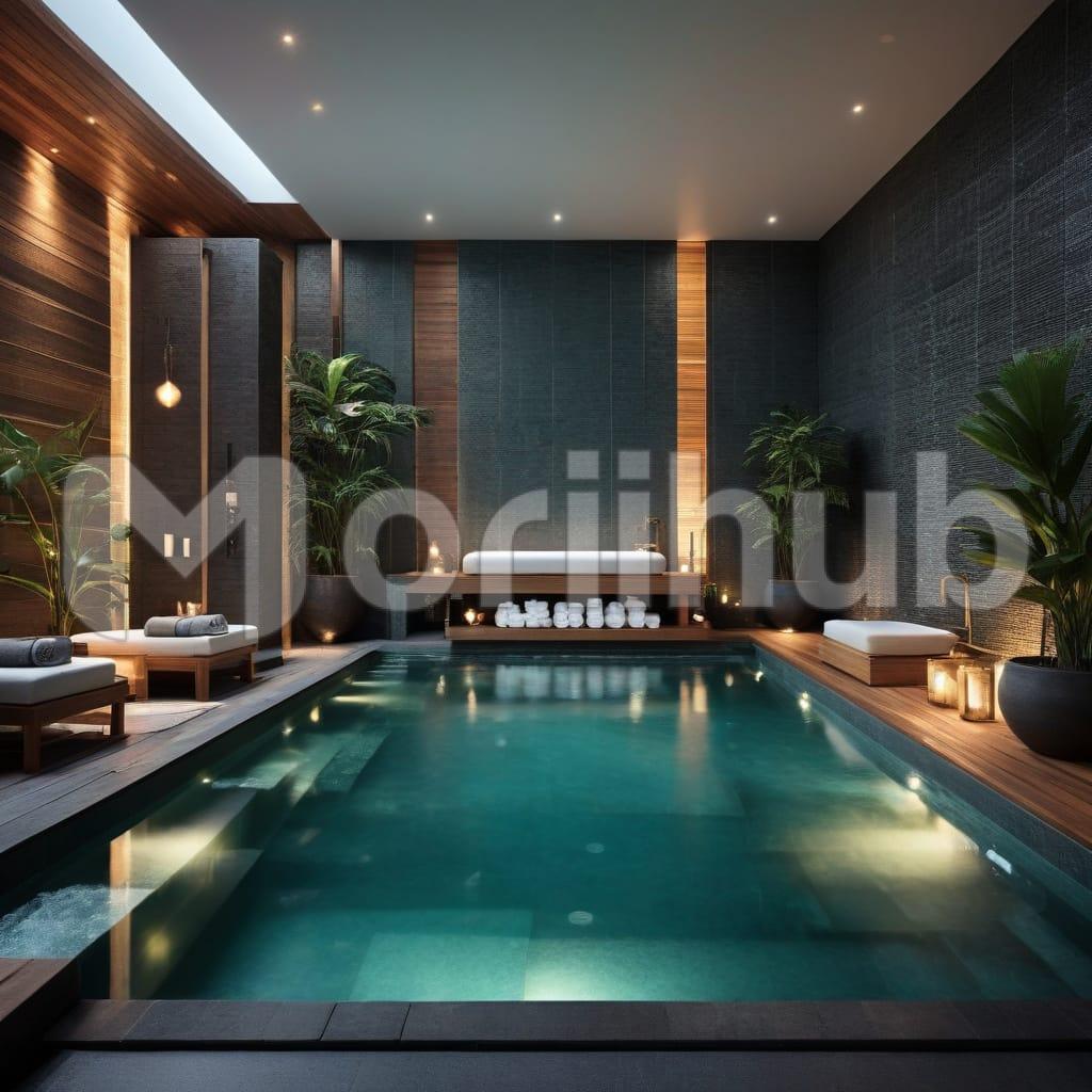 The beautiful spa with a pool offers a tranquil retreat, combining luxury and relaxation. Crystal-clear waters shimmer under soft lighting, while the serene ambiance is enhanced by soothing sounds. Guests can unwind in the pool or indulge in revitalizing treatments, making it the perfect escape to rejuvenate both the body and mind in a stunning setting.