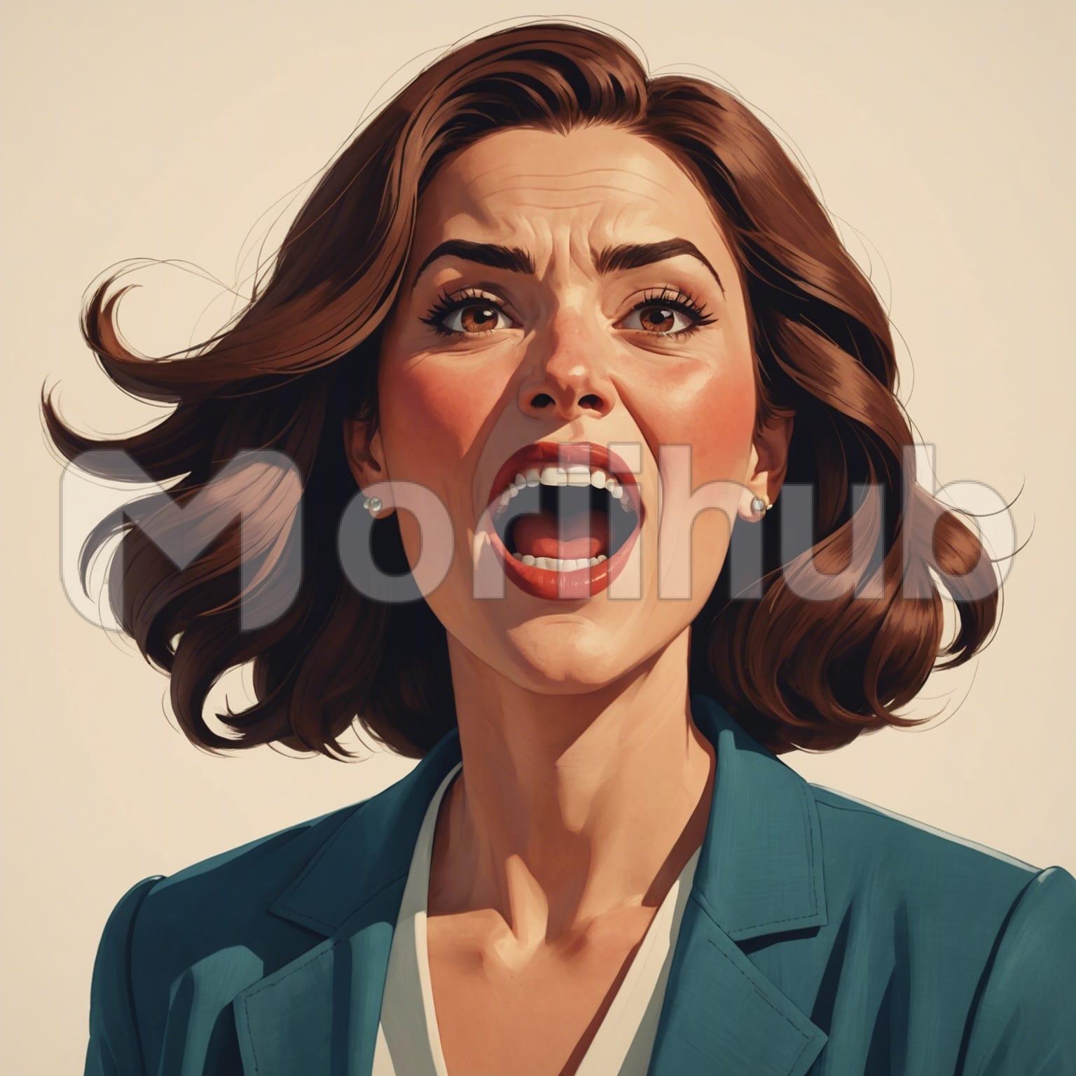 In the absence of embellishments, a woman’s animated form fills the plain background, her voice echoing with passionate intensity as she shouts. Every line of her figure is etched with fervor, her gestures conveying urgency. Eyes alight with determination pierce through the void, commanding attention. Her expression, a symphony of emotion, reflects resolve amidst chaos. Against the stark backdrop, her presence is magnetic, drawing focus solely to her fervent proclamation. In this solitary moment, her voice resonates, echoing the power of conviction against the canvas of simplicity.
