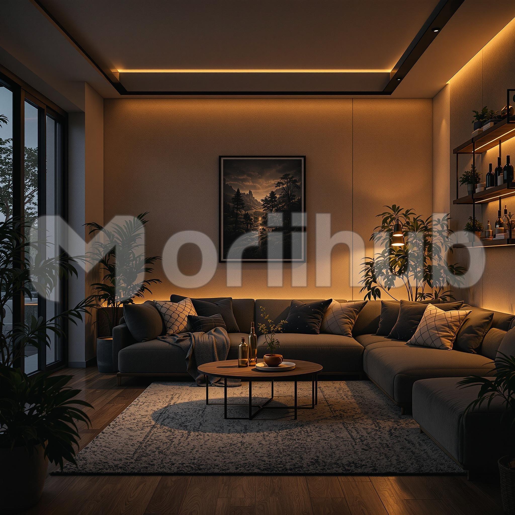This interior radiates elegance and charm, blending modern design with timeless beauty. Soft lighting enhances the sophisticated decor, while every detail reflects a perfect balance of comfort and style. The harmonious colors and textures create a warm, inviting atmosphere, making it a space where functionality meets aesthetic excellence.
