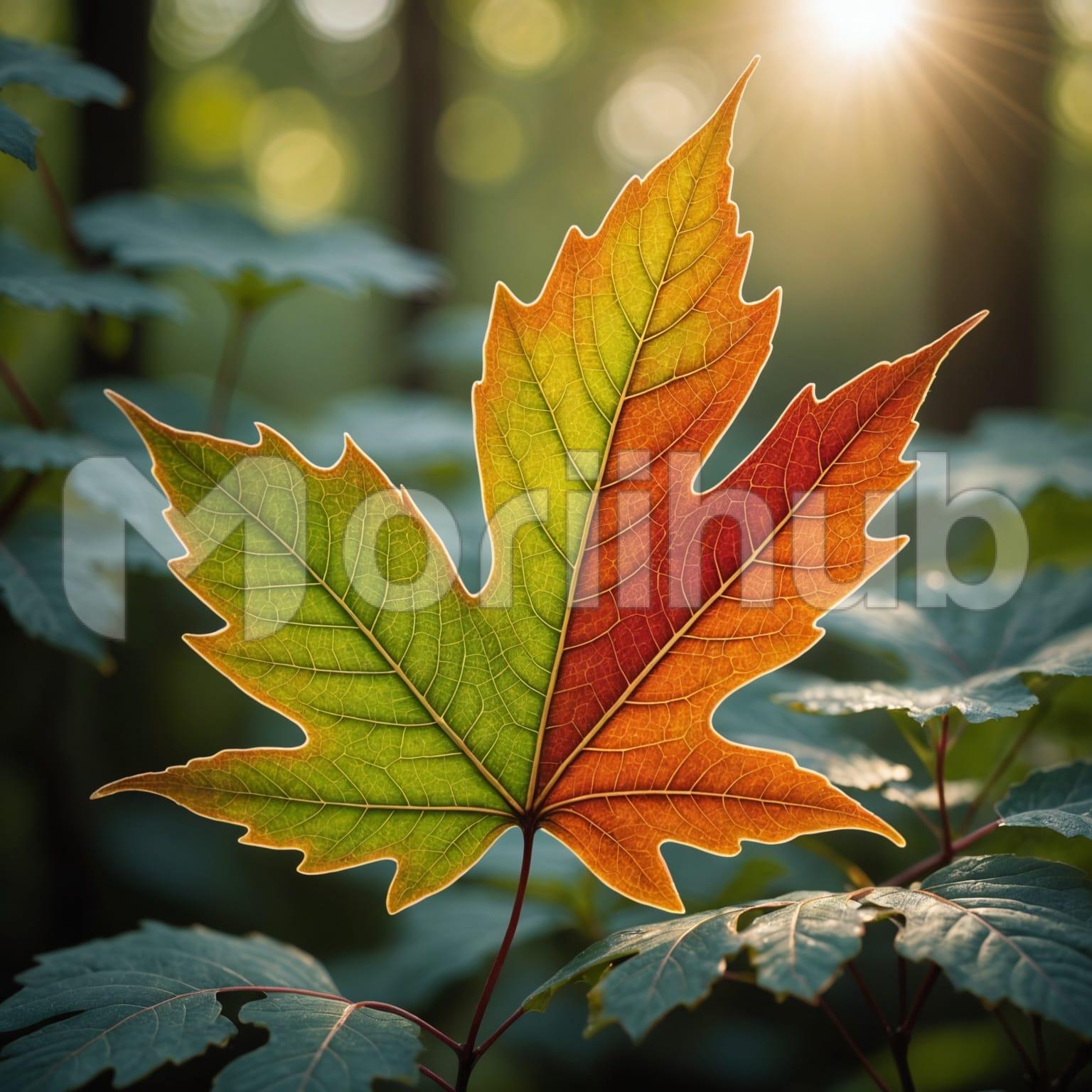 A single leaf basks in the warmth of sunlight, delicately attached to its stalk amidst a cluster of verdant foliage. Its vibrant green hue contrasts against the deeper shades of surrounding leaves, each one a testament to the plant’s vitality. The sunlight filters through the canopy above, casting dappled patterns on the leaves and enriching their colors. This serene scene captures the essence of growth and renewal, where the simplicity of a leaf and the gentle touch of sunlight harmonize in a natural symphony of life and nourishment.