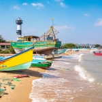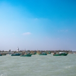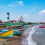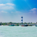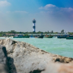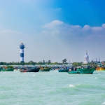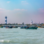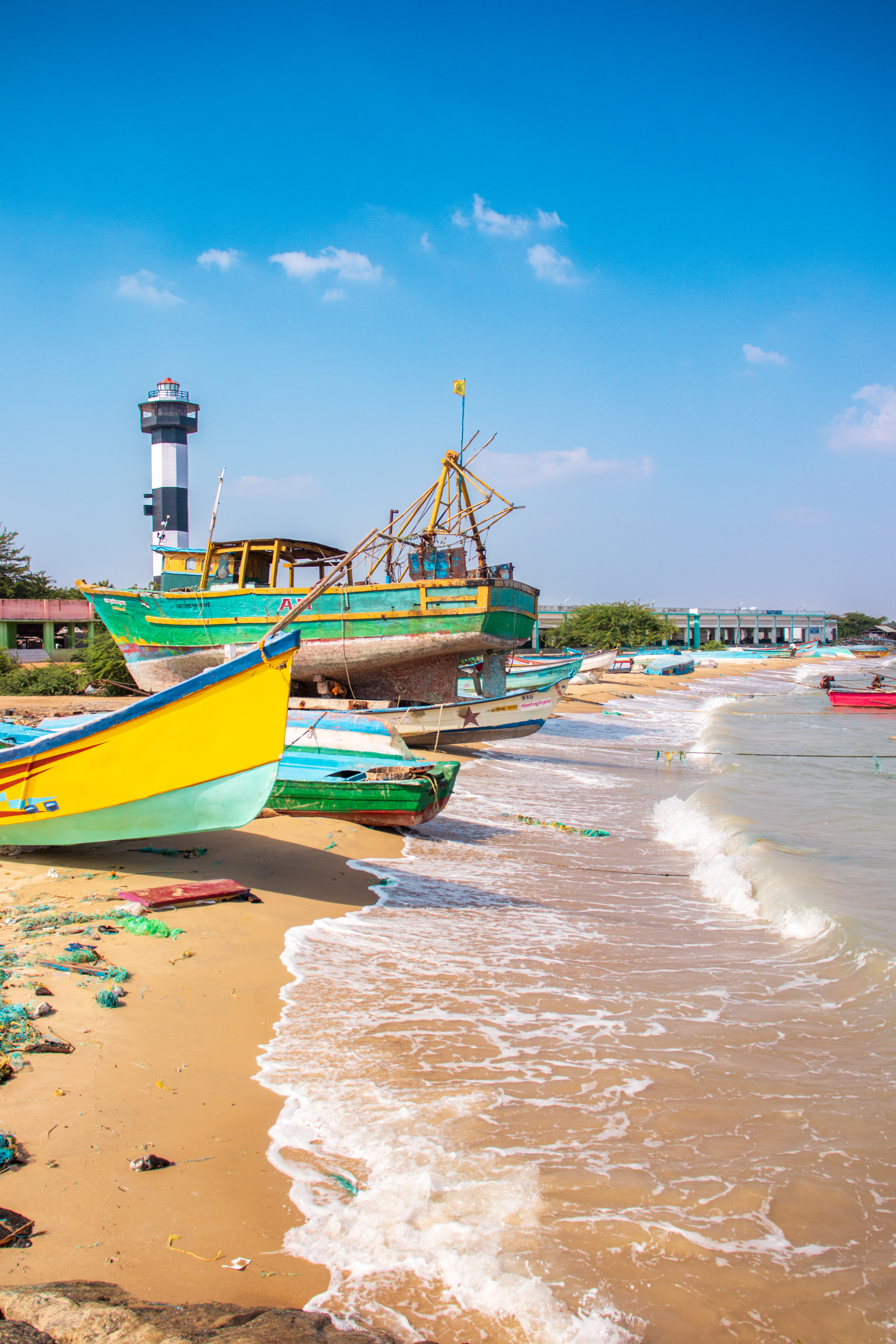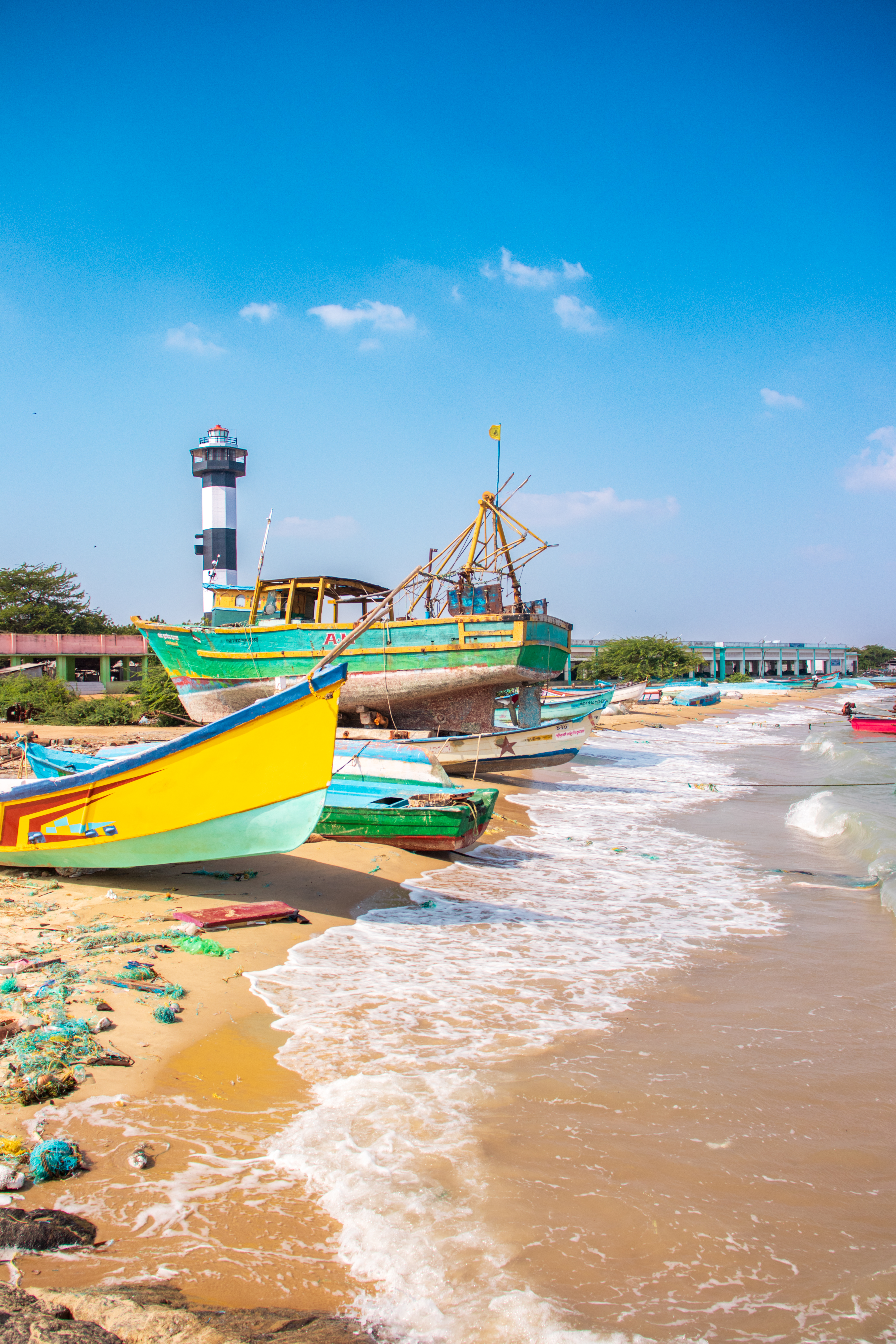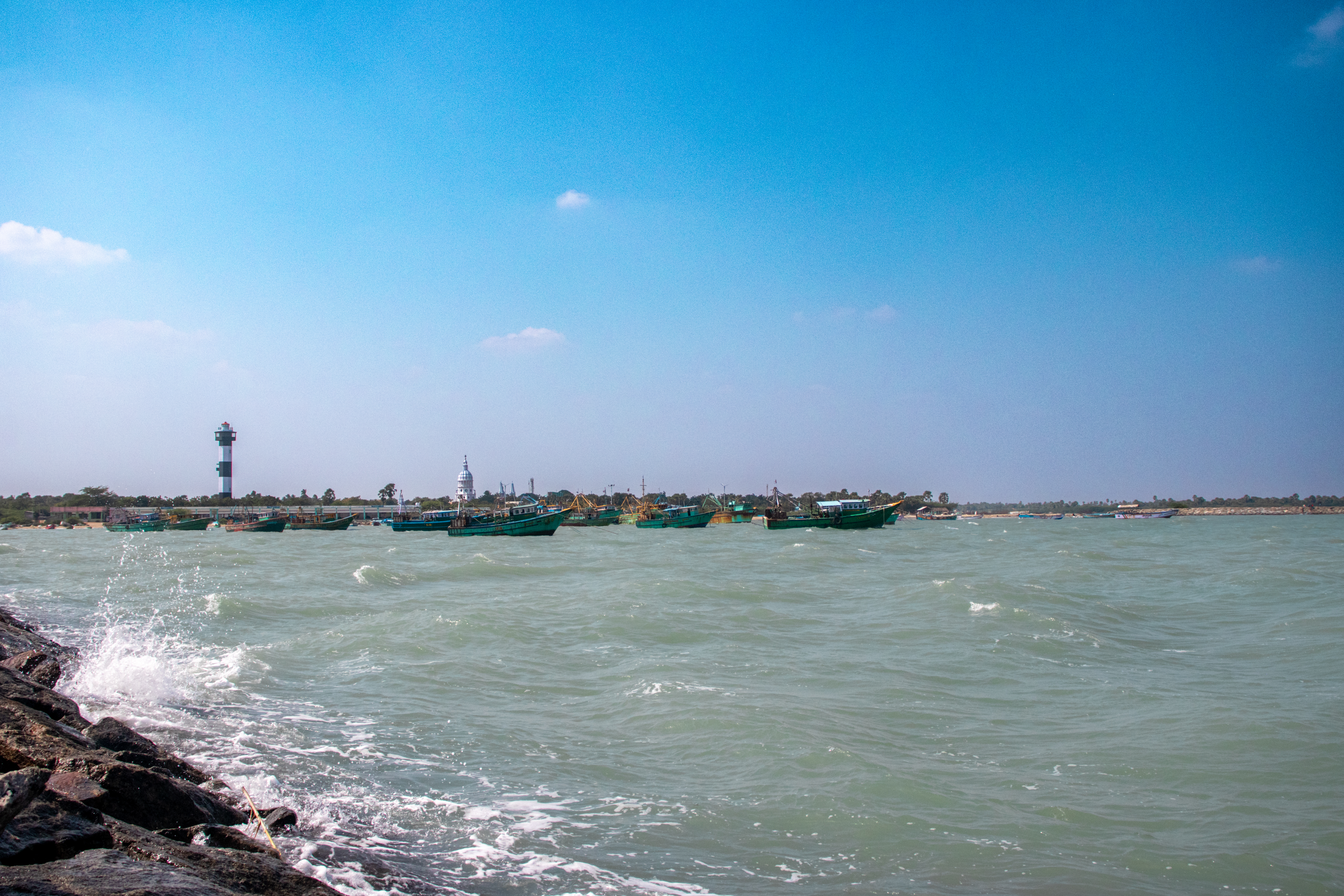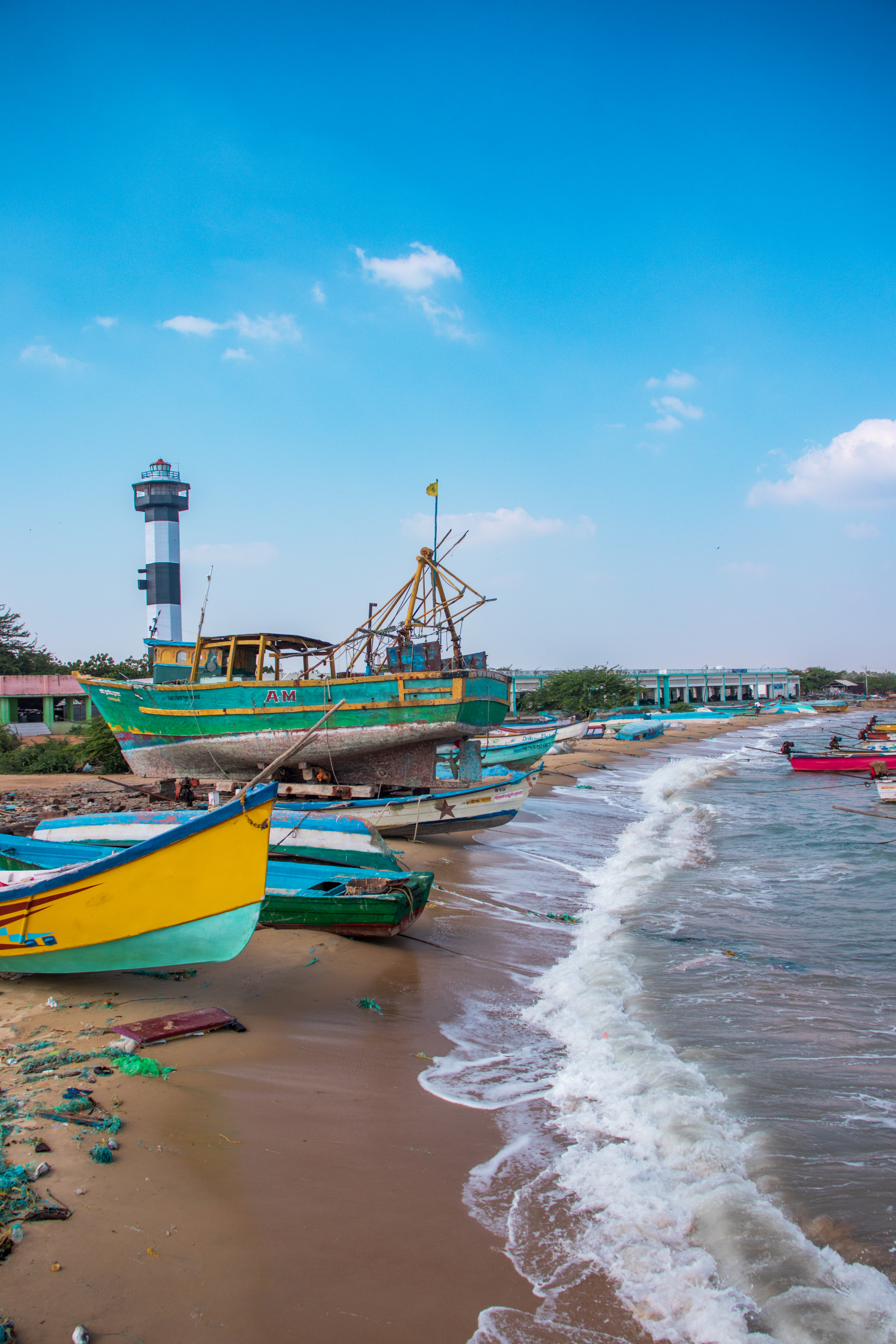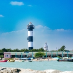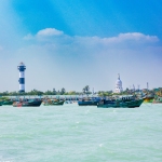 Capture the serene beauty of a coastal harbor with this captivating photograph. In the foreground, a historic lighthouse stands tall, its weathered facade a testament to the passage of time. Beyond, colorful fishing boats gently bob in the calm waters, their reflections creating mesmerizing patterns. This image evokes a sense of tranquility and nostalgia, making it perfect for a variety of design projects, from travel brochures to inspirational posters.