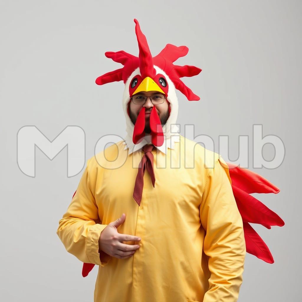 A man in a vibrant chicken costume waddles around, its oversized beak and feathery details making for a hilarious sight. His playful movements and the bright yellow costume bring laughter to everyone around, adding a touch of lightheartedness and fun to any gathering or event. It’s a quirky and memorable moment.