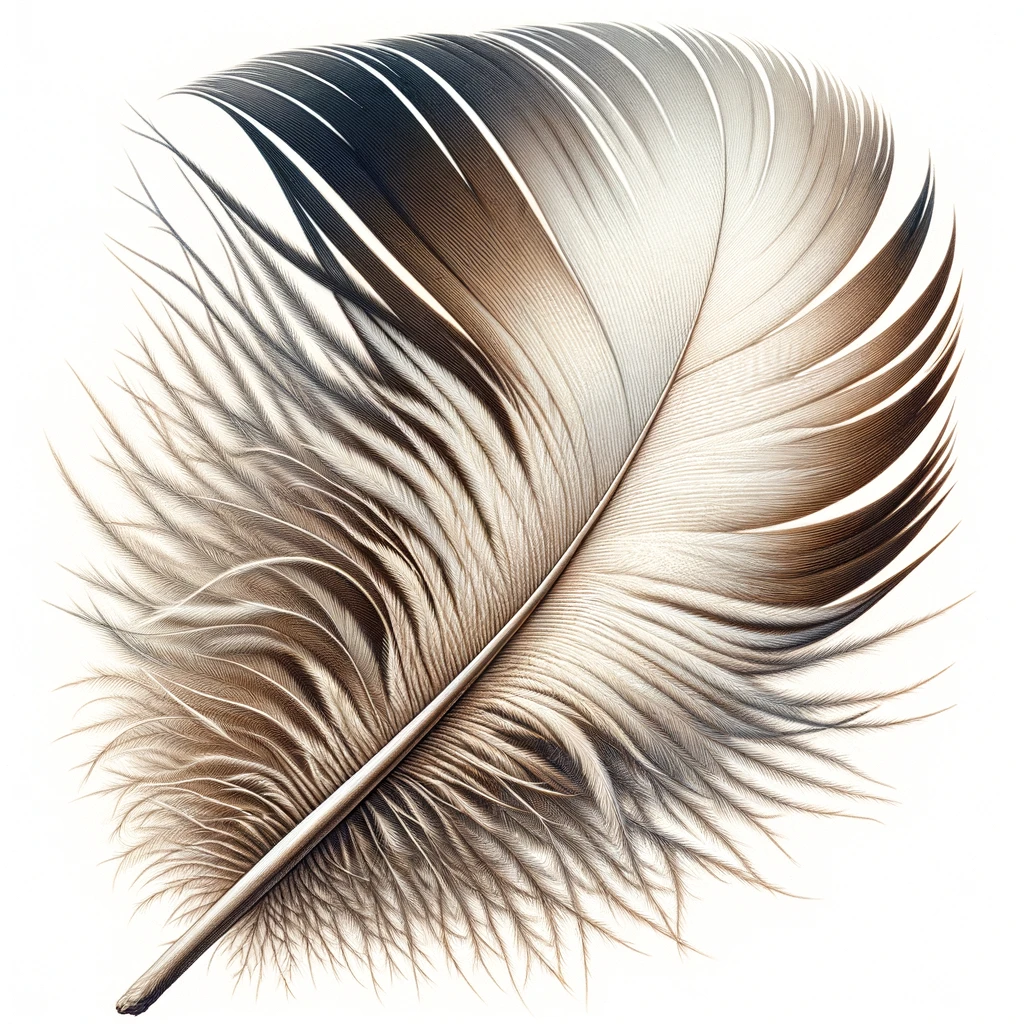 In the intimate focus of the illustration, a single feather emerges as a masterpiece of delicate elegance. Its wispy tendrils delicately intertwine, each strand a testament to nature’s meticulous craftsmanship. Light dances upon its surface, casting shadows that accentuate the intricacy of its design. Soft to the touch and ethereal in appearance, the feather exudes an aura of lightness and grace, inviting viewers to marvel at its natural beauty and contemplate the wonders of the world around them.