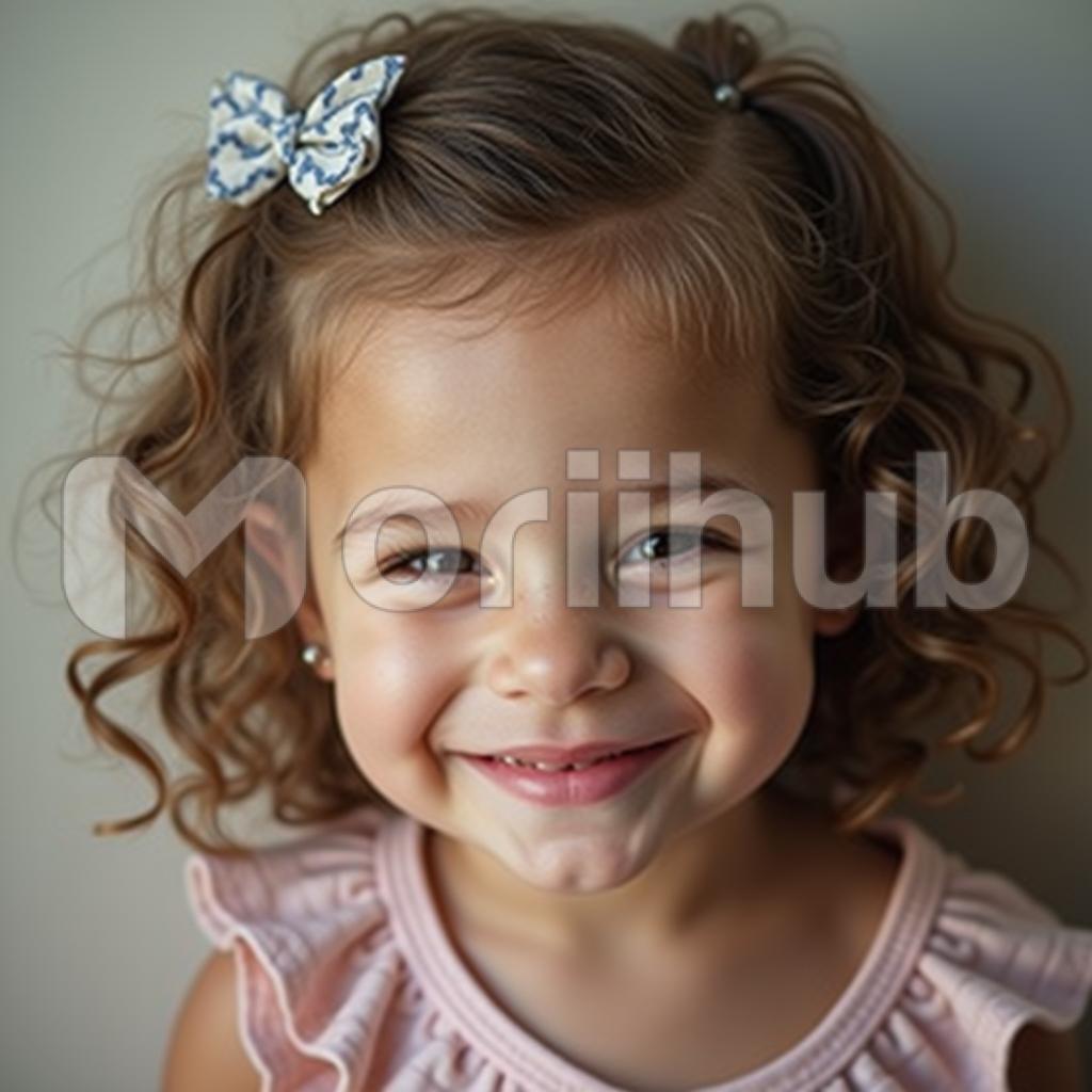 A cute little girl stands confidently, looking ahead with a soft smile that lights up her face. Her bright eyes shine with innocence and curiosity, reflecting a world of wonder. A charming bow adorns her hair, adding a playful touch to her youthful appearance. Dressed in a simple yet adorable outfit, she exudes an effortless charm that captivates anyone who gazes upon her. The plain background emphasizes her joyful expression and sweet demeanor, creating a heartwarming portrait of childhood that is both endearing and timeless.