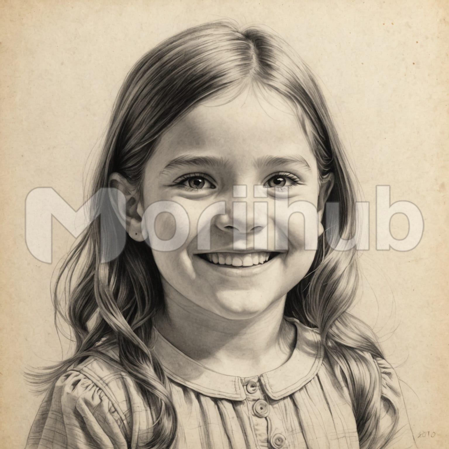 In the pencil sketch, a cute little girl beams with an infectious smile, her eyes sparkling with joy. The artist’s lines capture her youthful innocence and lively spirit, each stroke adding depth to her expression of happiness. Her hair falls in gentle waves around her face, adding to the charm of the portrait. Against the simplicity of the sketch, her smile radiates warmth, evoking a sense of pure delight. It’s a timeless depiction of childhood joy, where the pencil lines bring the sketch to life with a sense of endearing simplicity.