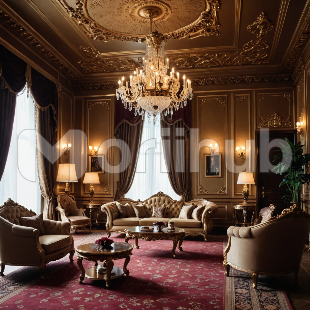 In the inviting living room, plush couches offer comfort and relaxation, beckoning weary souls to rest. A quaint round center table stands between them, a focal point for intimate conversations and cherished moments. Above, a dazzling chandelier casts a warm glow, illuminating the space with a touch of elegance. Drapes drawn open invite natural light to filter in, adding to the room’s airy ambiance and creating a welcoming haven for all who enter.