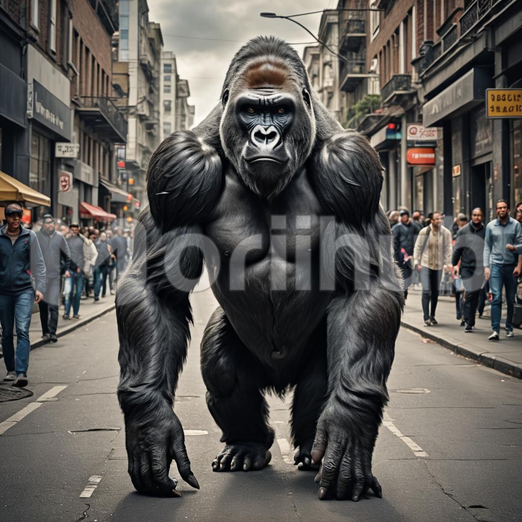 The bustling city streets were suddenly thrown into chaos as a massive gorilla made its way through the throngs of people and traffic. Towering over cars and pedestrians alike, the enormous creature moved with surprising agility, its powerful limbs propelling it forward with ease. Spectators watched in awe and fear, their daily routines abruptly interrupted by the astonishing sight.