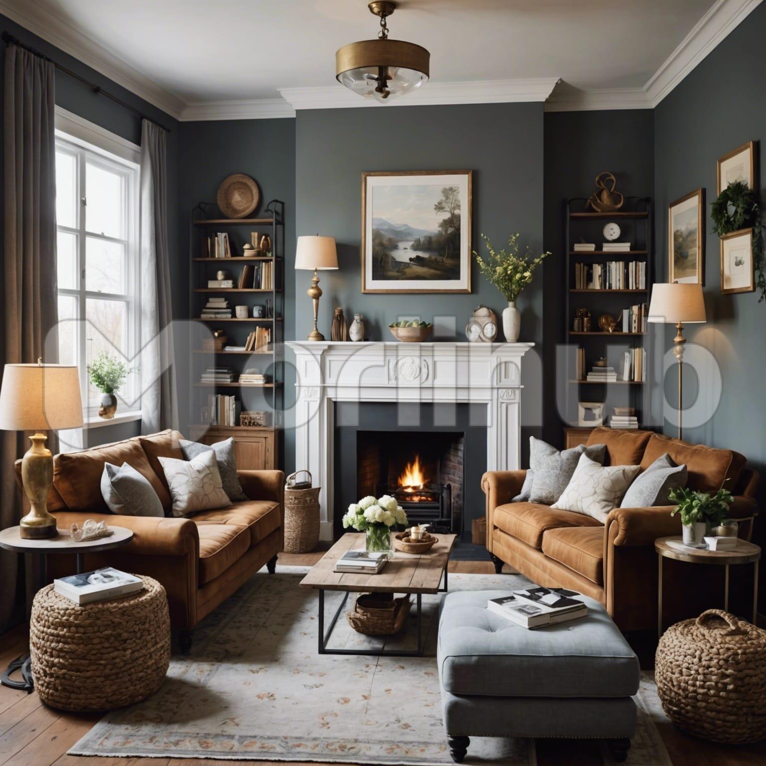 A cozy living room invites warmth and comfort with its thoughtfully arranged furnishings. Plush couches, adorned with soft cushions, create an inviting space for relaxation. In the center, a polished coffee table holds a delicate flower vase, its vibrant blooms adding a touch of natural beauty. The walls are decorated with an assortment of frames, each capturing cherished memories and art. In the corner, a lamp casts a gentle glow, illuminating the room with a soft, ambient light. The overall ambiance exudes homeliness and a sense of peaceful retreat.