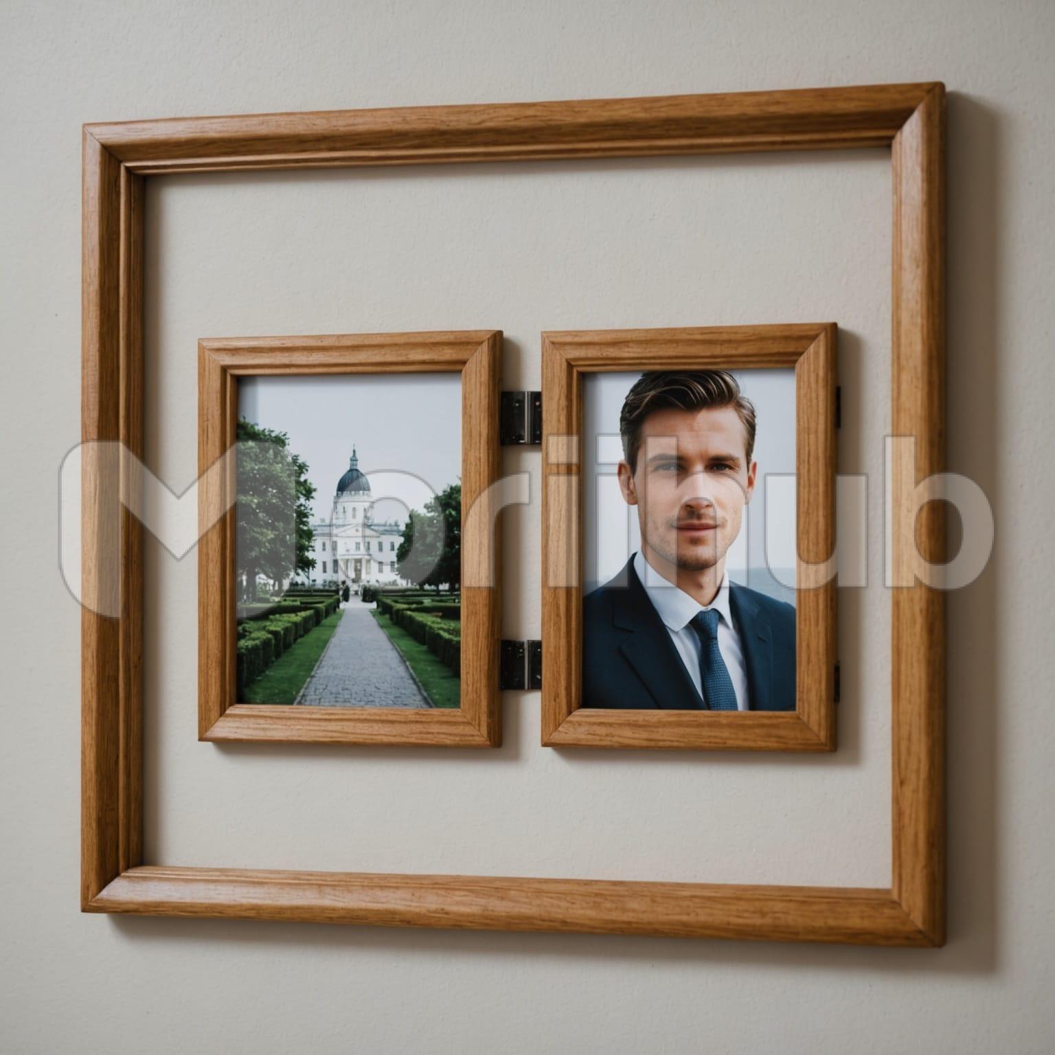 A wall frame with double pictures inside a gentleman features two elegant portraits showcasing the refined charm of a man. Each frame captures a distinct moment of sophistication or poise, creating a timeless display of style and grace. Perfect for adding a touch of class to any room or as a gift for a discerning individual.