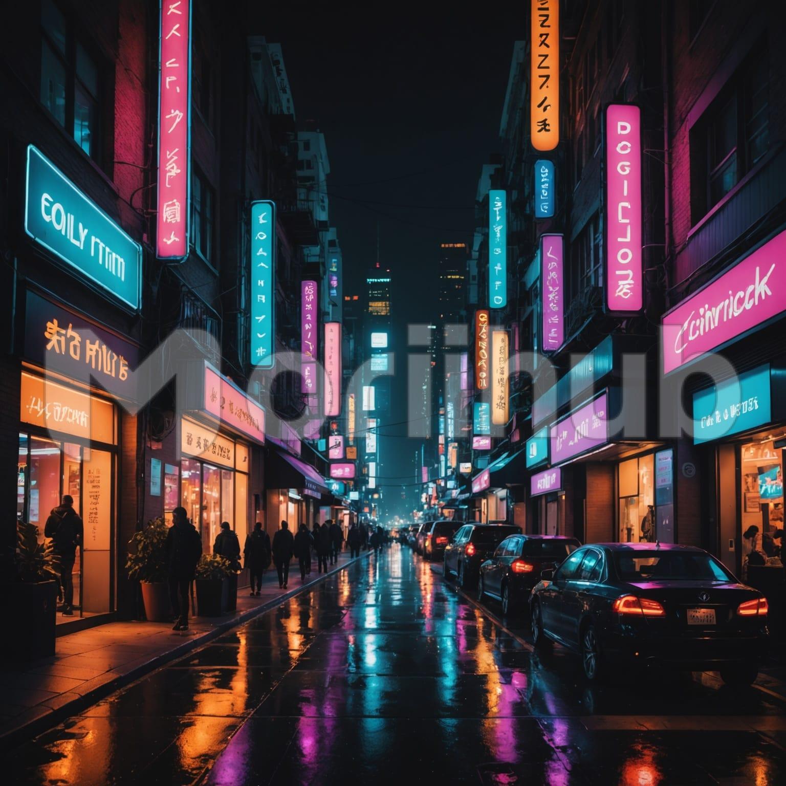 The city at night hums with quiet activity. People walk along the sidewalks, some engaged in conversation, others moving with purpose. Their steps echo against the pavement as they pass buildings with illuminated signs. Cars line the road, their surfaces reflecting scattered lights from nearby storefronts. Occasional headlights cast brief glows across the street before fading into the distance. The night air carries faint sounds of distant traffic and footsteps. Shadows shift as figures move, weaving through the quiet rhythm of the city’s late hours.