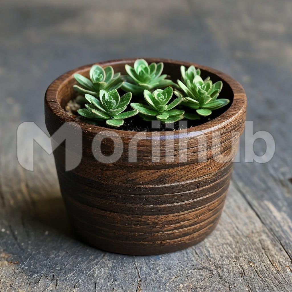 A miniature wooden bold pot, crafted with fine detail, adds rustic charm to any space. Perfect for small plants or as a decorative accent, this unique piece brings warmth and style. Its compact size and bold design make it an eye-catching addition to your desk, shelf, or windowsill, blending nature with craftsmanship.