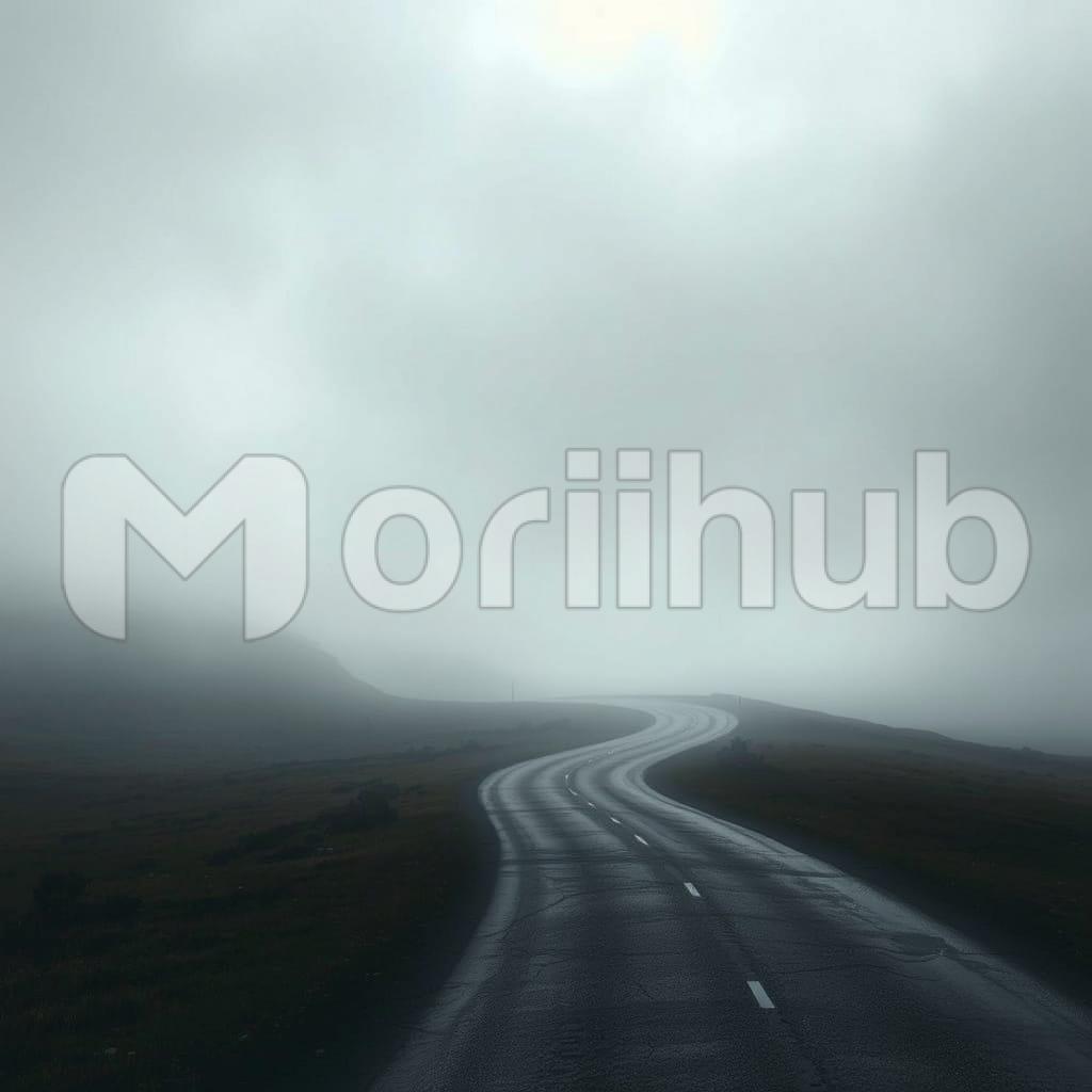 A lone misty road stretches forward, softened by a layer of light fog that blurs the edges of the path. The road curves gently, its surface slightly darkened, weaving through quiet surroundings. On either side, the view fades into pale tones as the mist hangs low, lending a hush to the scene. No movement is seen, just the stillness of early light filtering through the haze. The atmosphere feels hushed and isolated, the road empty yet quietly inviting, as if waiting for someone to pass through the silence ahead.