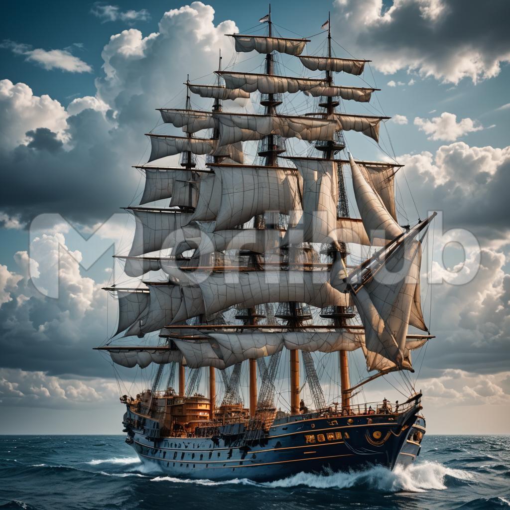 A modern ship glides gracefully through the endless expanse of a deep blue sea, cutting through gentle waves with sleek efficiency. Its polished steel hull reflects the sunlight, creating a striking contrast against the azure waters below. On deck, passengers enjoy panoramic views from expansive glass-walled lounges, while crew members work diligently amidst state-of-the-art navigation systems and advanced machinery. This seamless blend of technology and natural beauty exemplifies the allure of contemporary maritime travel, where comfort, safety, and awe-inspiring vistas converge on the open ocean.