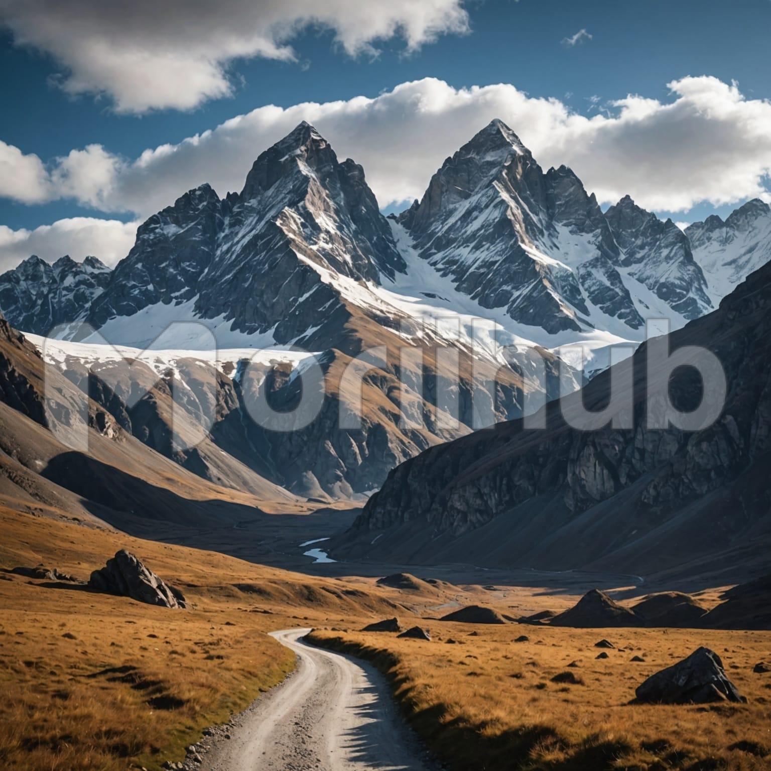 A majestic mountain looms ahead, its towering peak piercing the sky and commanding attention. The rugged slopes are adorned with patches of greenery, while the summit is crowned with a blanket of snow that glistens against the gray backdrop. Wisps of clouds drift lazily around the mountain’s apex, creating a mystical aura that adds to its grandeur. The air feels crisp and invigorating, filled with the promise of adventure. This stunning sight invites exploration and reflection, embodying the beauty and power of nature in its purest form.