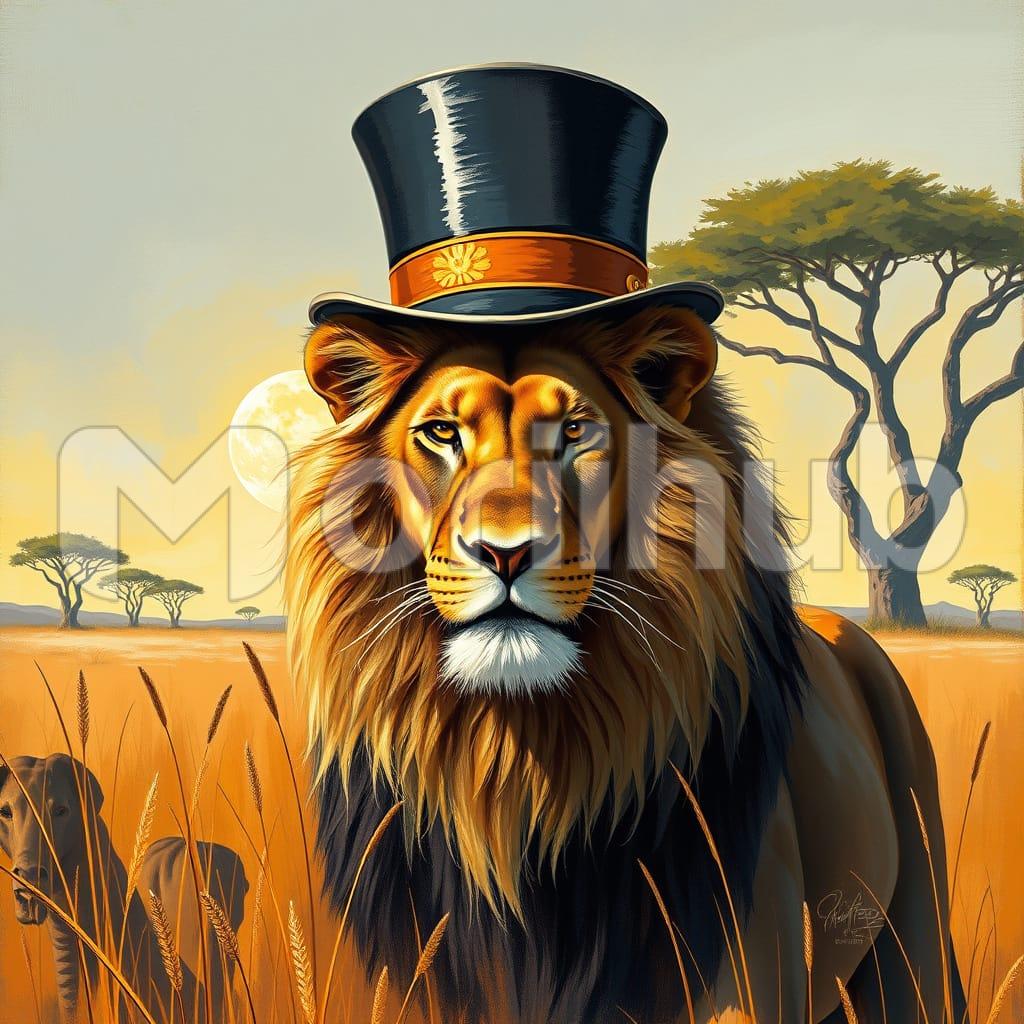A lion, confidently strutting through the jungle while wearing a hat, creates a whimsical and unexpected scene. Its majestic mane contrasts with the quirky accessory, adding a humorous twist to the wild setting. The lion’s regal posture and the playful hat make for a fun and memorable sight in the heart of nature.