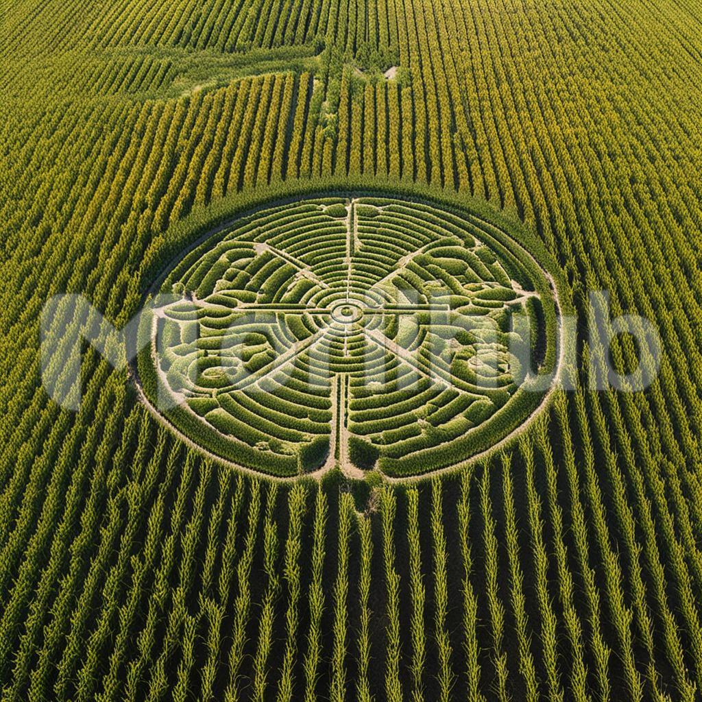 Amidst the golden expanse of a cornfield, a mesmerizing crop circle unveils intricate geometry. The lush stalks yield to a meticulously designed pattern, a testament to mysterious artistry. The crop circle’s symmetrical precision, etched into the agricultural canvas, captivates the observer with enigmatic allure. Nature and mystery converge in this rural tapestry, leaving a transient mark that sparks wonder and speculation amidst the swaying cornstalks.