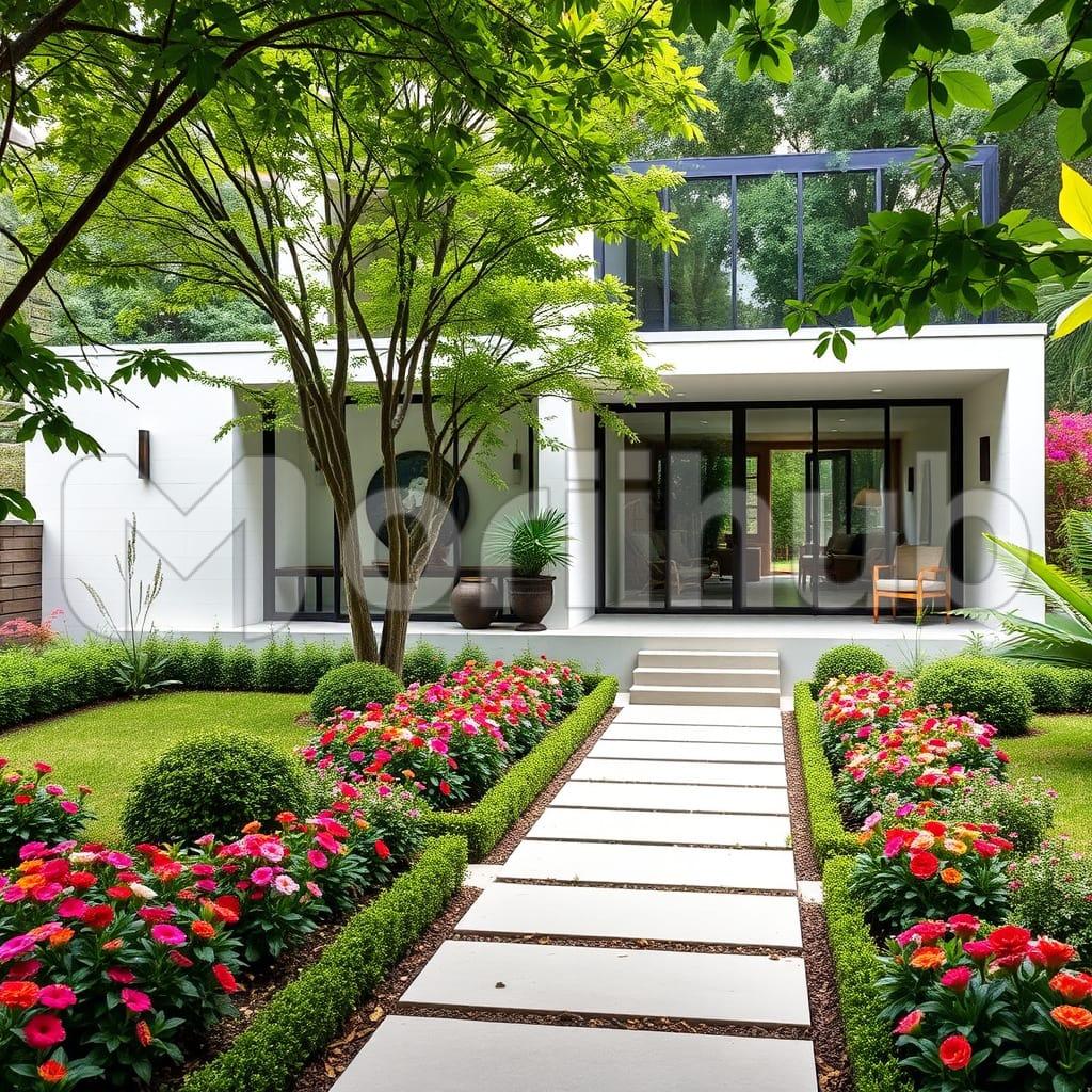 A modern double white duplex with a neat garden combines sleek white architecture with a lush, well-kept outdoor space. The clean lines and open design create a serene atmosphere, while the manicured garden adds a touch of nature. Perfect for those who appreciate minimalist elegance and tranquil surroundings in a modern home.