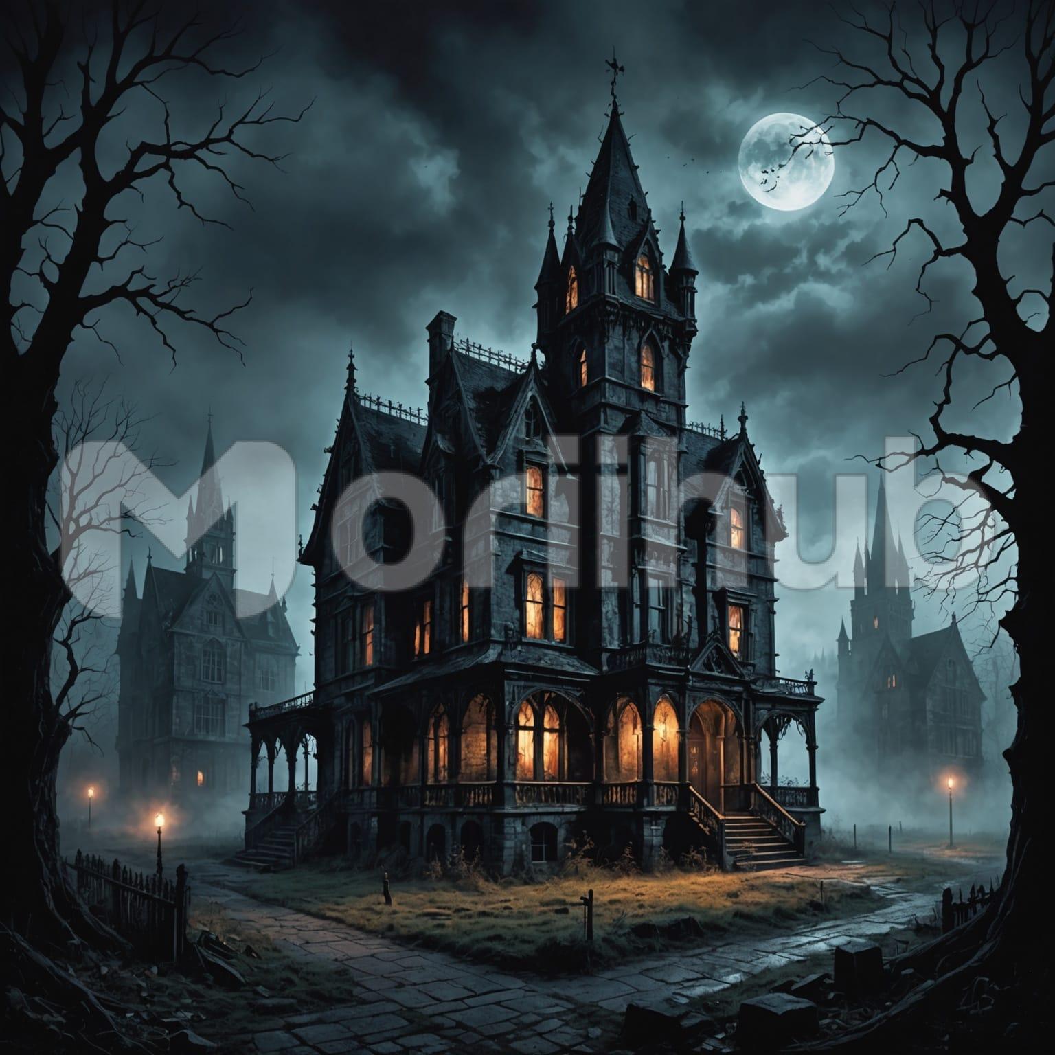At night, a house stands illuminated against the backdrop of a serene moonlit sky. Soft light spills from its windows, casting warm glows that contrast with the cool moonlight. Behind it, other houses dot the landscape, their silhouettes blending into the darkness. The scene exudes a sense of quietude and suburban charm, where the moon’s gentle radiance bathes the neighborhood in a tranquil glow. Each lighted window tells a story of domestic comfort, while the moon above watches over the peaceful night, creating a harmonious tableau of residential warmth under the night sky.