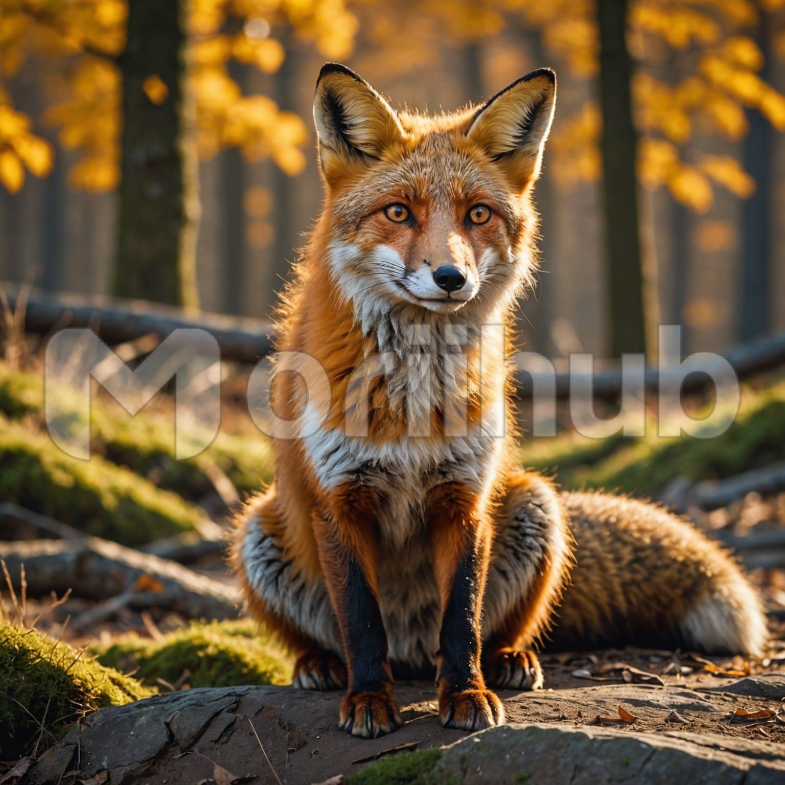 In the quiet depths of the woods, a fox sits with alert eyes, its russet fur blending seamlessly with the dappled sunlight filtering through the canopy above. Amidst the carpet of fallen leaves, it exudes a sense of natural grace, ears perked forward to catch the slightest rustle of leaves. The forest around it is alive with the murmur of unseen creatures and the whisper of breeze through branches. The fox’s presence, a fleeting glimpse of wilderness tranquility, adds to the enchanting ambiance of the secluded woodland scene.