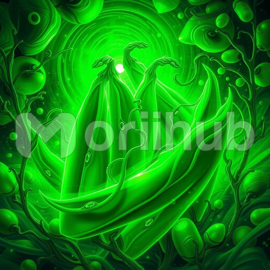 A “Green Pea Power” painting captures the vibrant energy of nature, using shades of green to represent the vitality and nourishment that green peas provide. The artwork combines organic forms and playful strokes to emphasize the power and life force within these small but mighty legumes, symbolizing growth, health, and abundance.