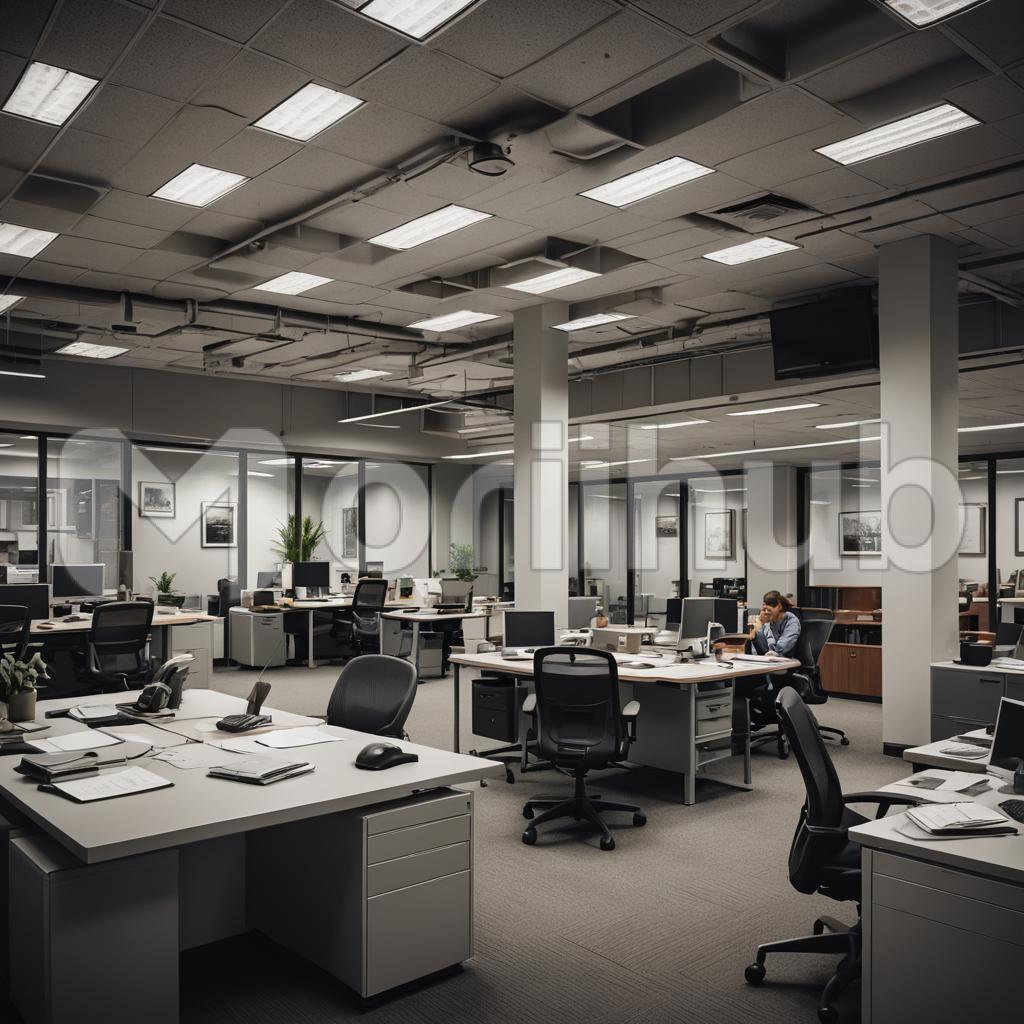 A pure office space, designed to optimize productivity and focus. It features minimalist desks, ergonomic chairs, and ample natural light to create a conducive work environment. Organized shelves and storage solutions keep clutter at bay, while technology integrates seamlessly for efficient workflow. The neutral color palette promotes a calm atmosphere, enhancing concentration and creativity. In this space, every element is purposeful, supporting professional success and well-being.