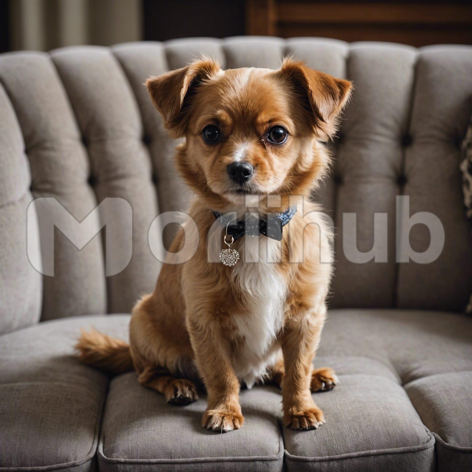 A dog with drooping ears sits comfortably on a plush couch, its fur blending with the soft fabric. Its eyes, a warm, deep brown, convey a sense of calm and contentment. The dog’s head is slightly tilted to one side, ears flopping gently down, giving it a relaxed and endearing appearance. The peaceful ambiance of the room adds to the serene atmosphere surrounding the dog.