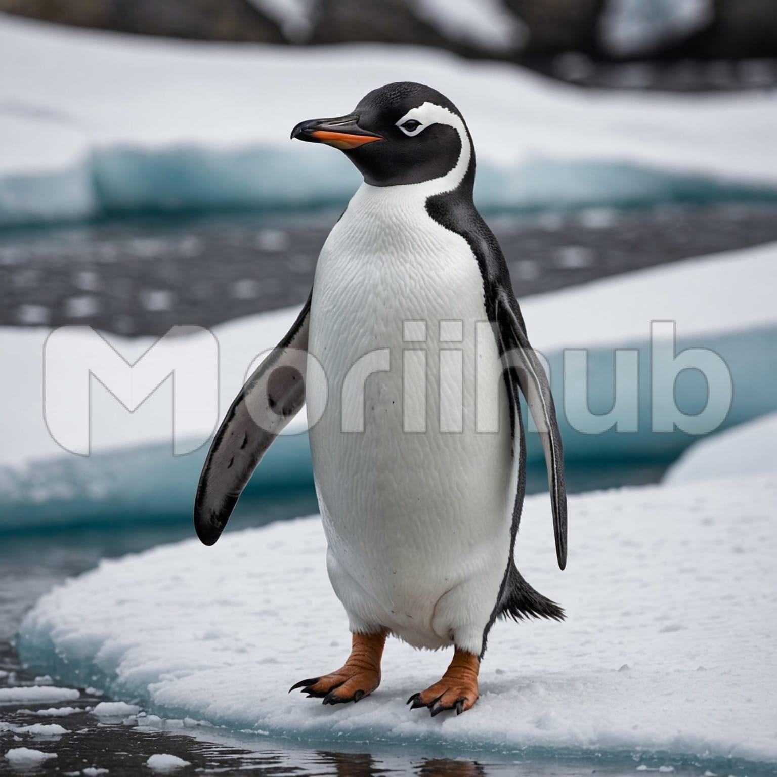 A penguin stands on the icy terrain, its body upright and still against the frozen expanse. The ground beneath is firm and cold, stretching out in quiet silence. Around it, the surface glints with frost. The penguin’s gaze is steady, its posture calm, as if taking in the stillness of the landscape. There’s no movement, only the quiet presence of the bird in this frozen setting. It remains there, motionless, a solitary figure surrounded by the vast reach of ice and the hush of distant cold.