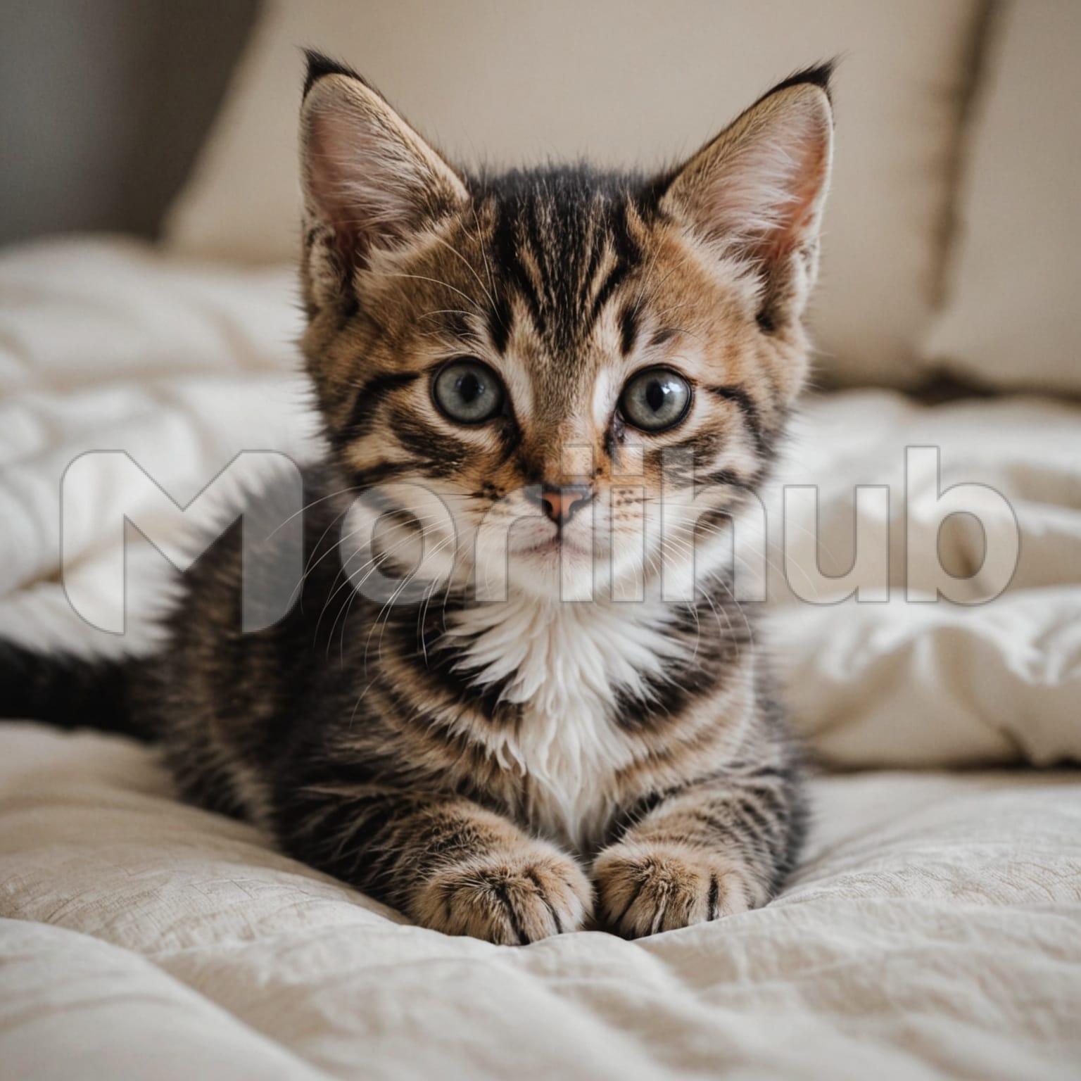 A cute cat lies on a bed, resting quietly with its head slightly raised as it looks ahead. Its ears are perked, and its gaze is steady, focused on something unseen. The fur appears smooth, the body relaxed, paws tucked in as it remains still. The bed beneath is slightly wrinkled where the cat has settled. Nothing else distracts from its quiet posture. It doesn’t shift or stir, simply watches, calmly alert. In this gentle moment, the cat seems present, settled in its place, neither playful nor sleeping, just quietly observing.