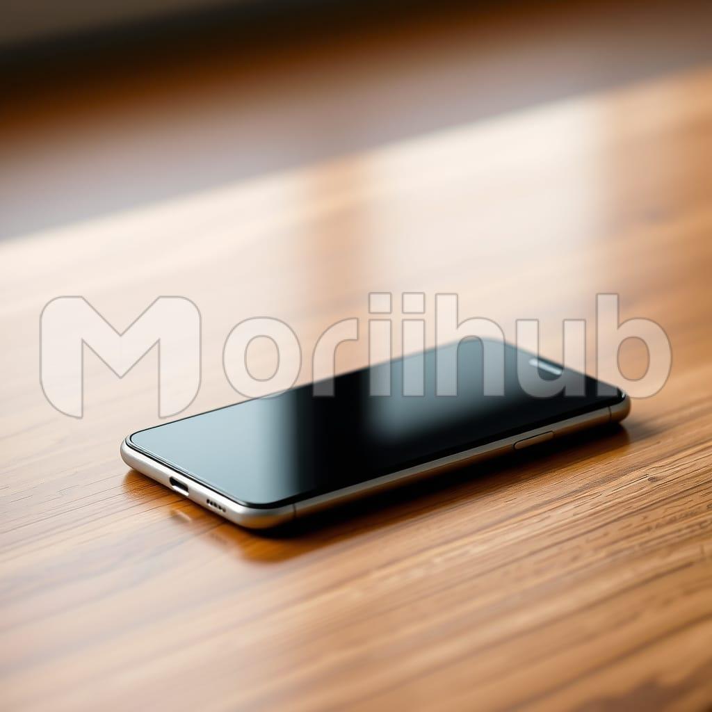 A phone rests on a wooden surface, its blank screen reflecting nothing back, leaving it still and understated. The plain background enhances the contrast between the device’s smooth finish and the natural texture beneath it. Its shape is clear, edges defined against the wood, showing a balance of technology placed on something simple and timeless. With no activity displayed, the phone appears calm, almost waiting, silent in its purpose. The scene captures an everyday object set down without distraction, quietly present.