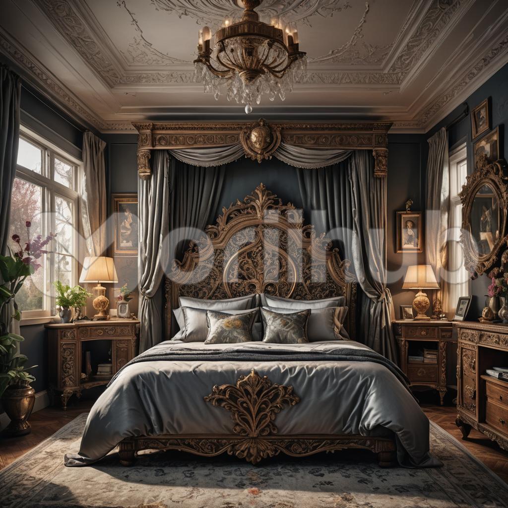 An elegant bedroom, a sanctuary of refined luxury, welcomes with a serene ambiance. Soft, billowing curtains dance in the breeze, framing windows that invite the morning sun. Plush bedding beckons for restful repose, while ornate furniture exudes timeless sophistication. Every detail, from the delicate chandelier to the opulent decor, whispers indulgence and comfort, creating a haven of unparalleled elegance.