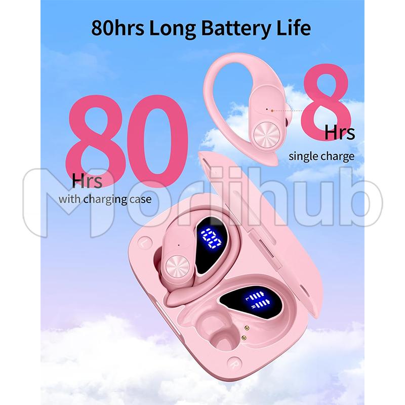 80hrs Playtime & Digital Charging Case: Each ear buds offers up to 8 hours of listening time on a single charge, allowing you to enjoy a total of 80 hours of music by taking turns with the charging case. Wireless earbuds feature a dual LED digital display that provides real-time battery status. Easily monitor the remaining power and plan your usage accordingly.