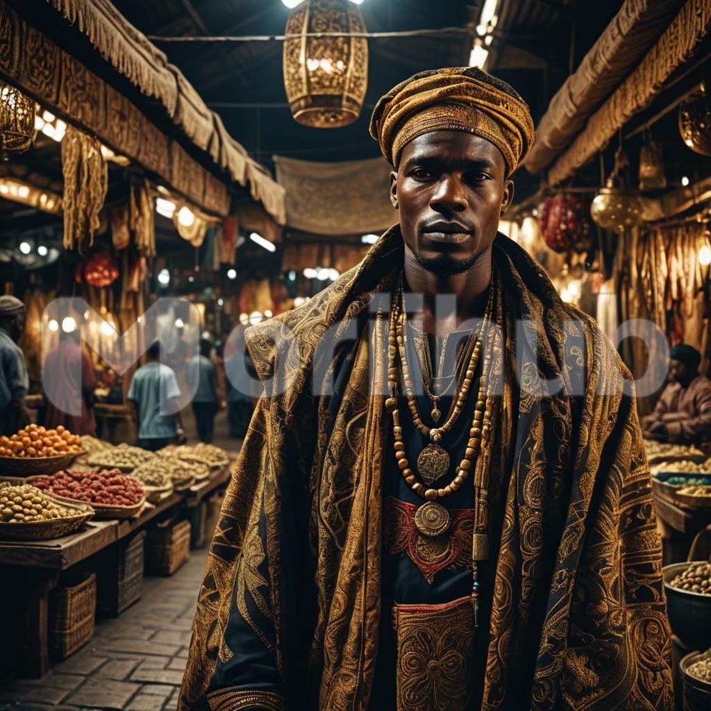 An African man dons traditional attire with a sense of pride and cultural heritage. His outfit, often a vibrant display of color and craftsmanship, may include a richly embroidered robe or dashiki, characterized by intricate patterns and bold hues. The fabric, whether it’s the luxurious kente cloth or the fine mud cloth, reflects both the artistry and significance of his culture.