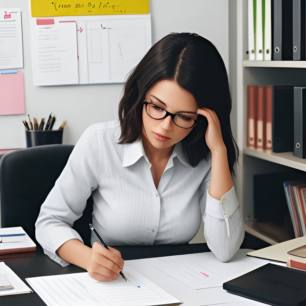 In her office sanctuary, a woman sits immersed in focused concentration, a poised embodiment of professional prowess. The rhythmic dance of her pen on a notepad captures the essence of meticulous note-taking. Her desk, adorned with neatly arranged documents, echoes the organized symphony of her thoughts. The soft glow of desk lamps illuminates the scene, creating an ambiance of productivity. With unwavering dedication, she navigates the sea of information, transforming her workspace into a haven of efficiency where ideas and tasks converge with seamless grace.