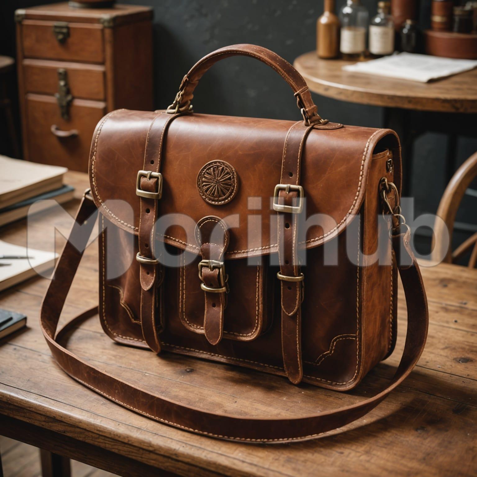 A leather bag rests on a table, its smooth surface showing gentle creases that hint at use and character. The stitching along the edges appears neat and firm, suggesting careful craftsmanship. Its shape holds steady, with handles positioned neatly as though recently placed down. Light catches the surface softly, giving the bag a warm and refined appearance. The table beneath provides a simple backdrop, allowing the bag’s quiet elegance to stand out. The scene feels calm, as if paused in a moment between journeys or daily routines.