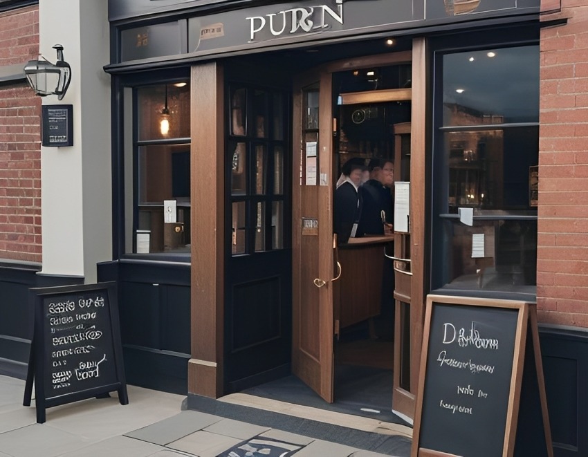 In the soft glow of the morning light, the pub awakens with the promise of a new day. The weathered wooden doors, slightly ajar, invite in the first tendrils of daylight. A subtle creak accompanies the movement, a sound that heralds the beginning of the pub’s daily rhythm. The entrance, adorned with a modest sign and weathered brass handles, hints at the tales that unfold within. Sunlight spills across the threshold, revealing a glimpse of the well-worn floors and the cozy interior beyond. The air is infused with the lingering scents of last night’s revelry, a blend of aged wood and faint hints of spirits. Outside, the city stirs as the pub prepares to embrace its early patrons, offering a haven of warmth, camaraderie, and the timeless charm that only a morning pub can provide.