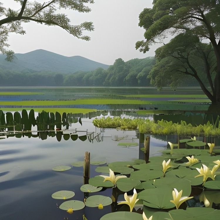 A vibrant rainbow arches gracefully across a natural landscape, stretching over lush green hills or a calm river. The colors of the rainbow contrast beautifully with the serene surroundings, creating a magical and uplifting scene. The clear sky and gentle sunlight enhance the vivid hues, making the moment feel peaceful and awe-inspiring.