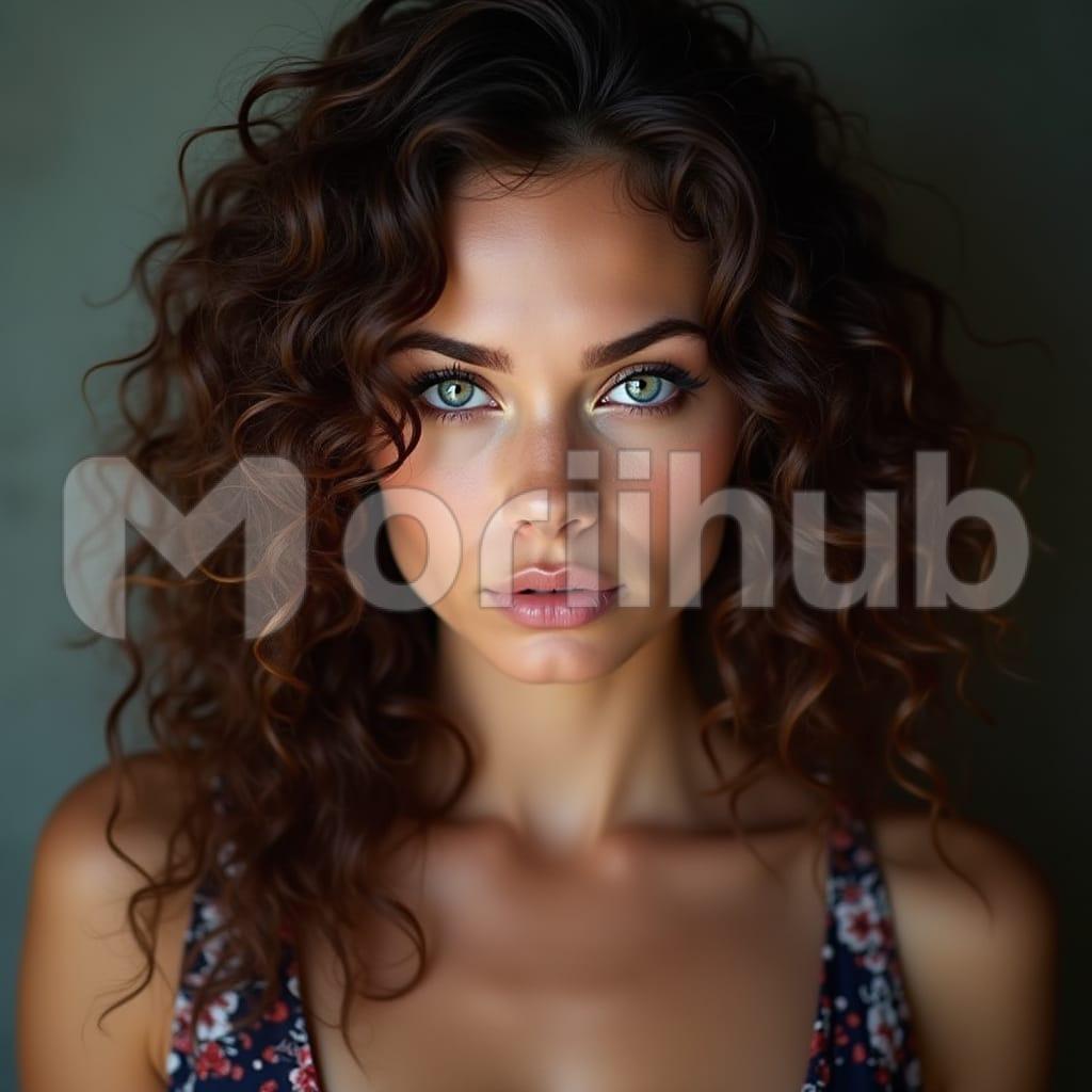 A woman stands with a poised presence, her gaze steady as she looks on. Her features are defined with a quiet elegance, and her hair frames her face. There is a calm intensity in her expression, as if lost in thought or observing something with quiet interest. The soft contours of her face add to her striking appearance, each detail framed by the subtle grace in her posture. She remains still, her presence undeniable, a quiet moment captured in a world that continues moving around her.