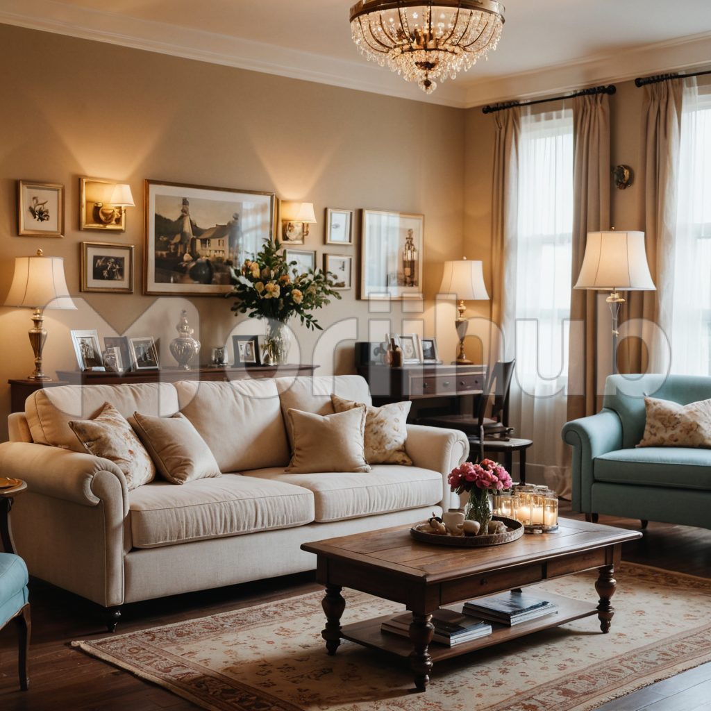In the cozy living room, plush couches beckon with their comfort, inviting relaxation and conversation. Adorning the walls, carefully curated art pieces add personality and charm to the space. A coffee table stands as a centerpiece, adorned with books and trinkets, while lamps in the corners cast a warm, inviting glow. With drapes drawn open, the room feels airy and spacious. In this harmonious sanctuary, the blend of comfort, style, and natural light creates a welcoming haven for rest and rejuvenation.