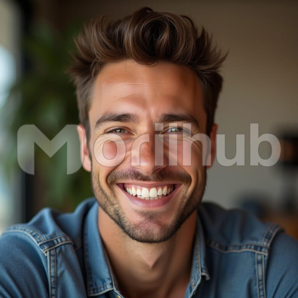 A man smiles warmly, his eyes focused ahead, radiating a sense of calm and contentment. His well-trimmed beard adds a mature touch, while his expression conveys both ease and confidence. The background is intentionally blurred, emphasizing his features and drawing all attention to his face. The soft, indistinct shapes behind him create a sense of depth, but the focus remains on his genuine, friendly smile. His posture is relaxed, and his expression reflects a moment of quiet joy in a subtle yet engaging way.