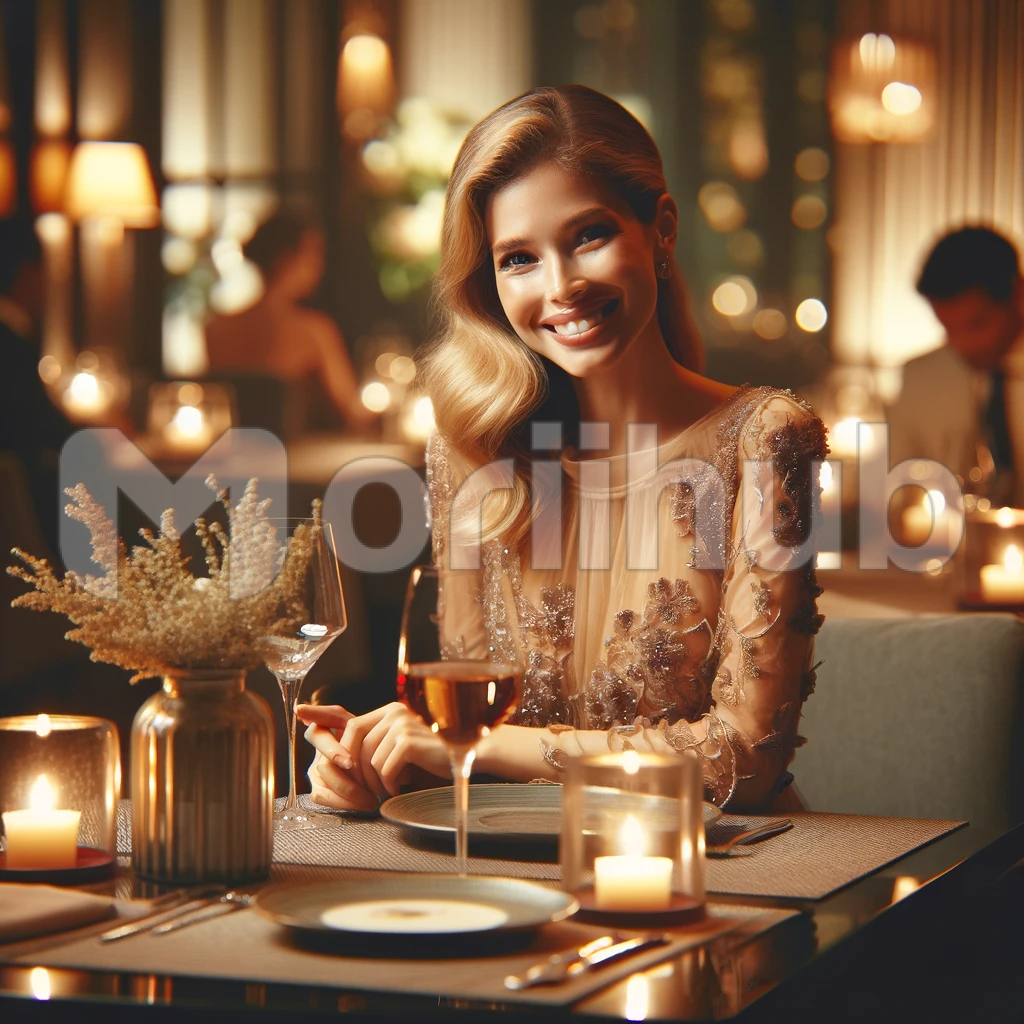 The lady sat alone at the elegantly set dinner table, a solitary figure amidst a sea of untouched plates, crystal glasses, and flickering candles. Her posture exuded a sense of quiet contemplation as she gazed into the distance, her eyes filled with a mixture of nostalgia and anticipation, perhaps waiting for a long-lost love or lost in the depths of her own thoughts. The soft, ambient lighting cast a gentle glow on her face, highlighting the subtle lines and wrinkles that told the story of a life well-lived. Despite the emptiness around her, there was an undeniable aura of grace and resilience in her solitary presence.