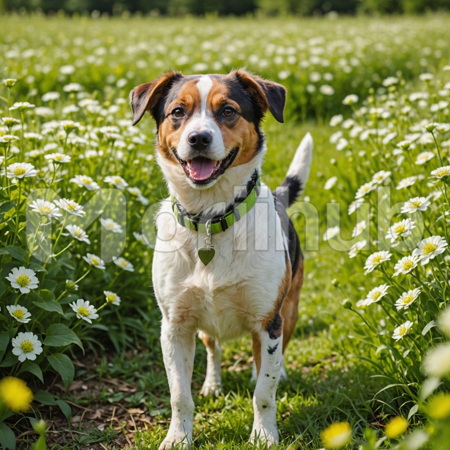 A dog moves through the floral field, ears drooped as it steps carefully among the blossoms. Its paws press into the earth, leaving faint marks behind. The gentle sway of flowers surrounds it, their petals shifting with each movement. A breeze stirs its fur, carrying the faint scent of blooms. Its gaze remains steady, thoughtful, as it continues forward at an unhurried pace. The open field stretches far ahead, quiet and undisturbed, while the dog walks on, blending into the stillness of the landscape.