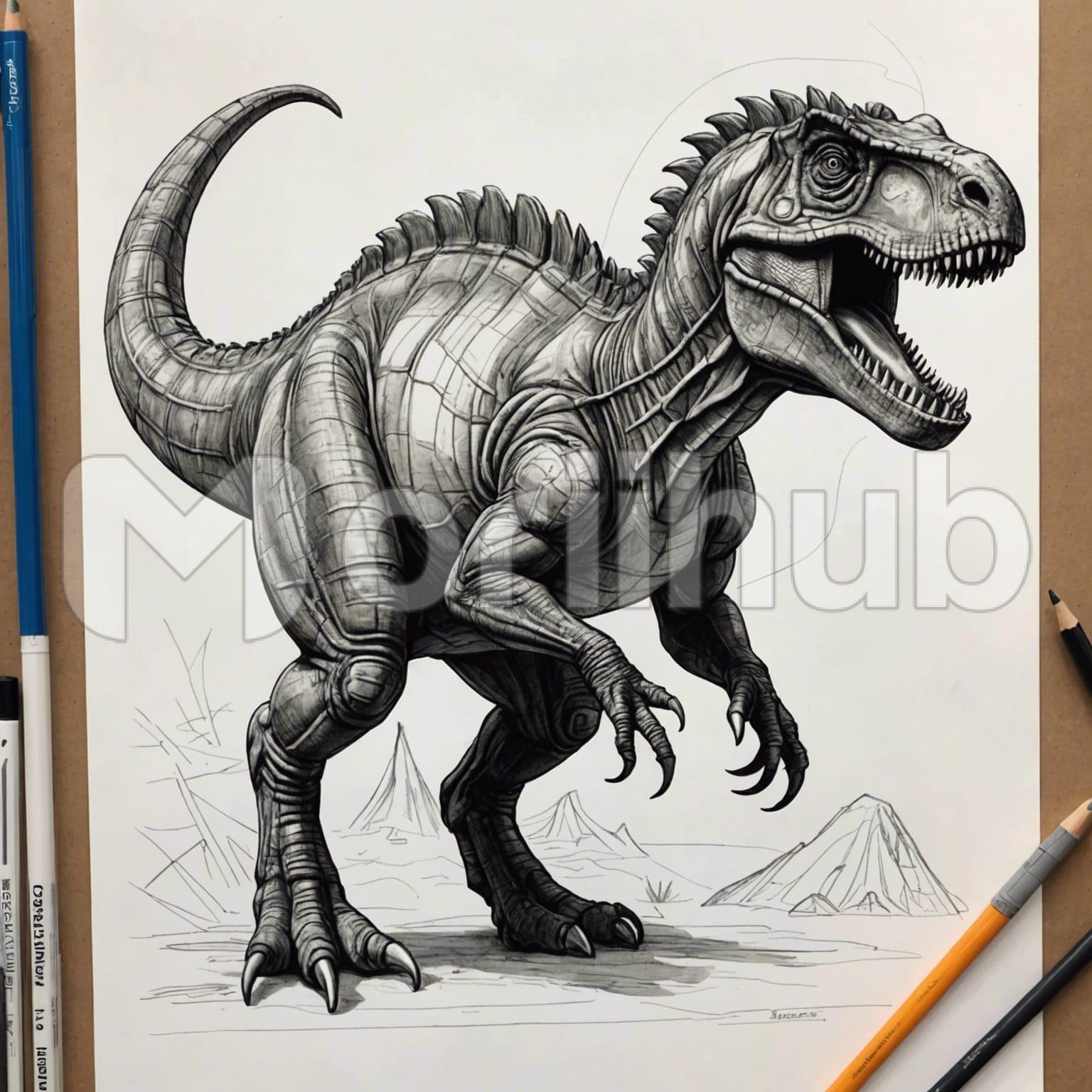 With graceful strokes, a pencil sketch brings a dinosaur to life, capturing its majestic stride across the paper’s expanse. Each line defines the creature’s powerful form, from its sturdy legs to its sweeping tail. In the sketch’s simplicity, the dinosaur’s presence looms large, evoking a sense of awe and wonder. As it traverses the paper’s surface, the creature seems to transcend the confines of the page, transporting viewers to a prehistoric world where giants once roamed the earth with unmatched grandeur and majesty.