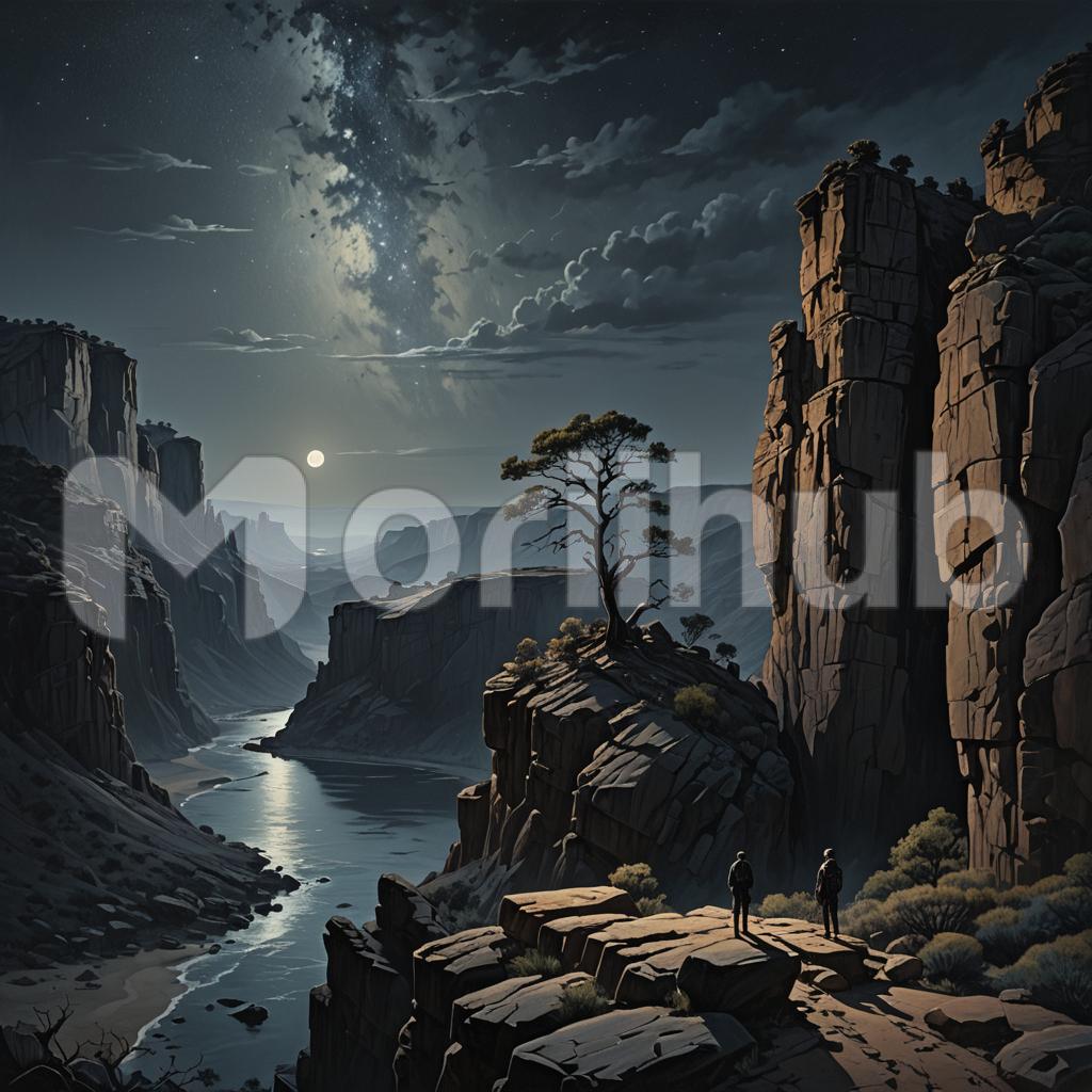 Picture travelers standing atop a cluster of rugged rocks, gazing out at the vast expanse of the sky above. The rocks beneath their feet are jagged and weathered, hinting at the passage of time and the elements that shaped them. The sky stretches infinitely, painted with hues of pink, orange, and deep purple as the sun begins to set. The traveler stands in awe, taking in the breathtaking view, feeling a deep connection to the world around them. The moment is one of wonder and reflection, as the beauty of the natural world unfolds before their eyes.
