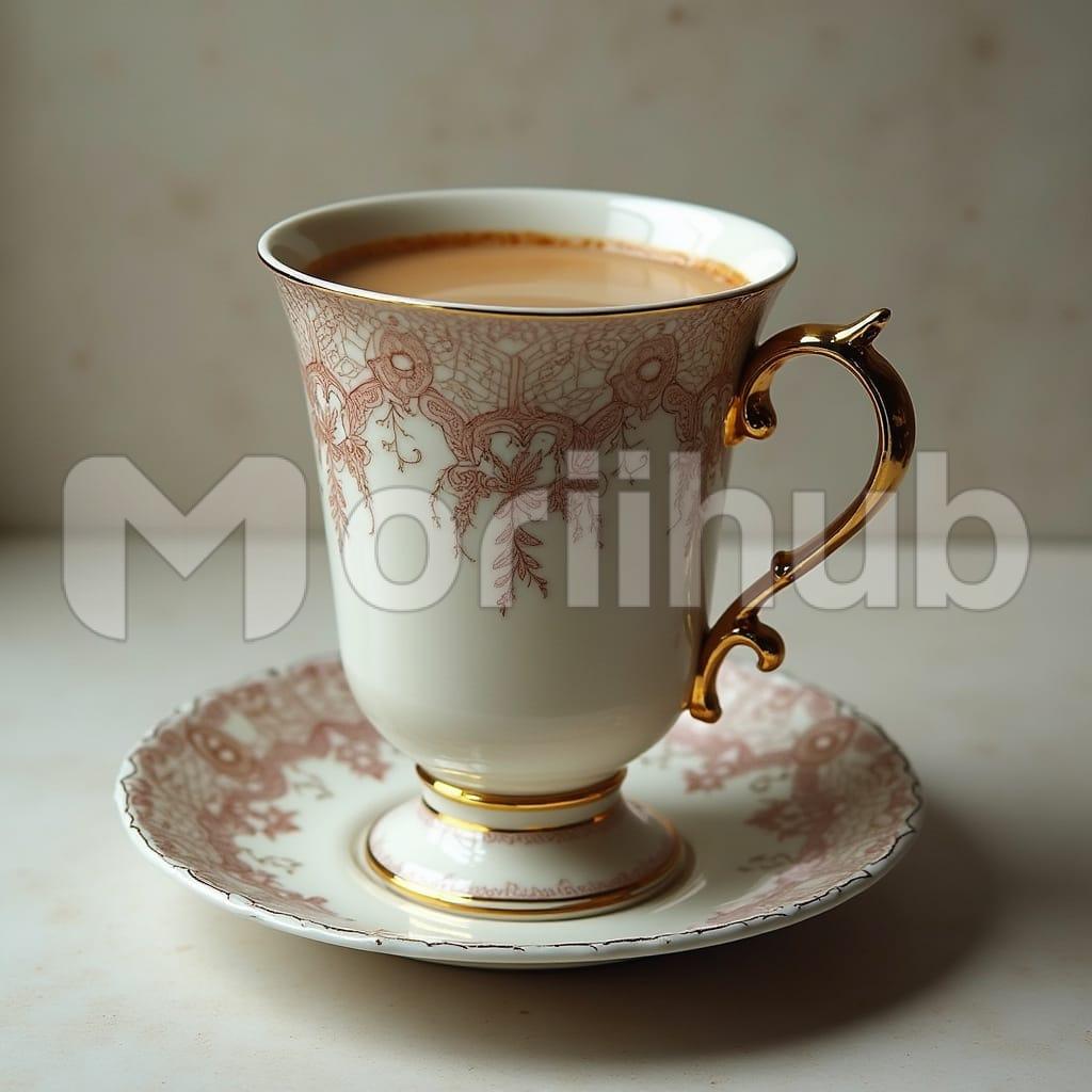 A cup of coffee rests on a saucer, its surface smooth and adorned with intricate designs. The patterns weave along its form, delicate and precise, adding a quiet elegance. The liquid within remains still, its surface unbroken, rich with warmth. The saucer beneath mirrors the cup’s refinement, a subtle complement to its detailed artistry. The moment lingers, unhurried, as the cup remains untouched, waiting to be lifted. Its presence carries a sense of quiet indulgence, a simple yet refined pause before the first sip is taken.