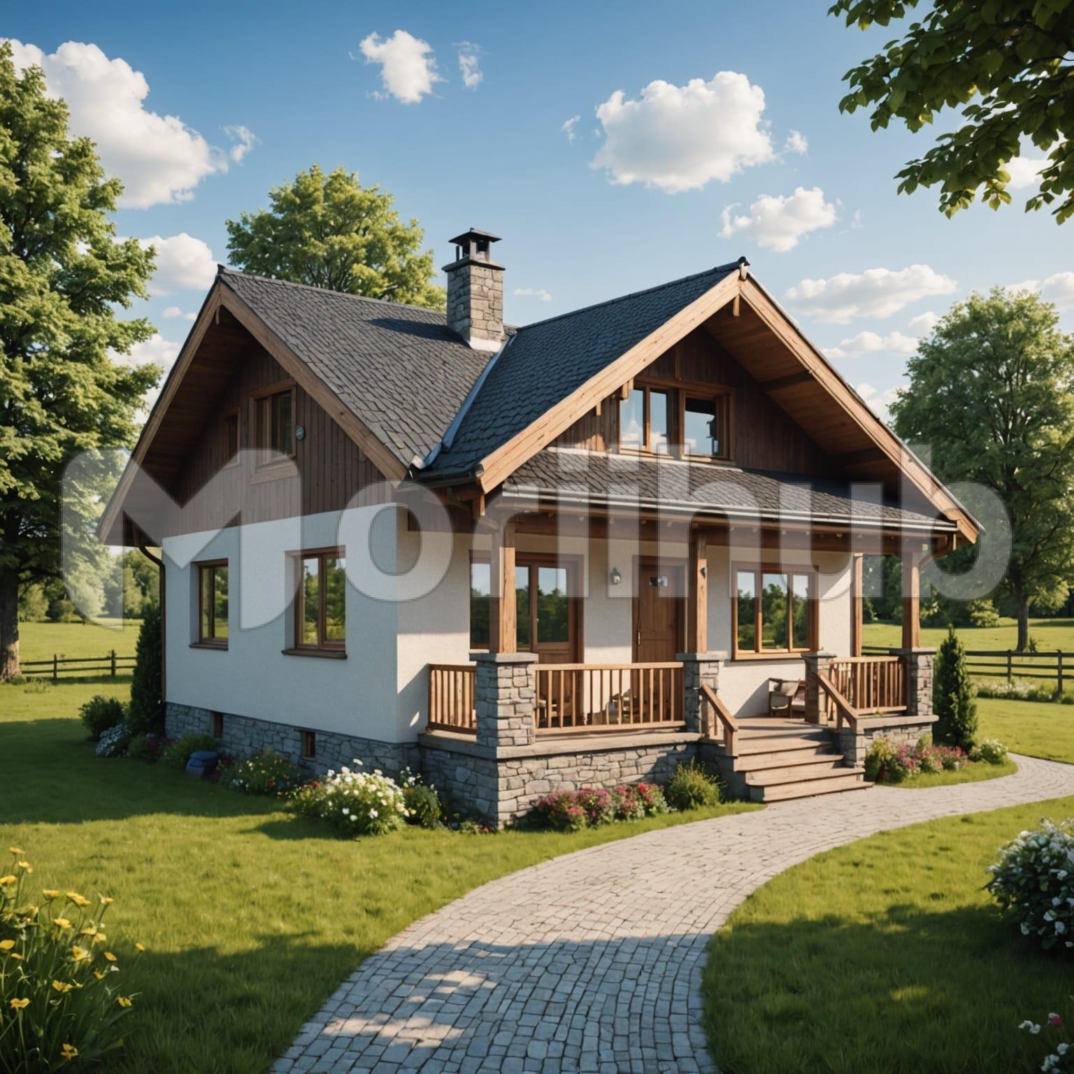 A quaint house stands with charm, nestled in a peaceful setting. Its design reflects warmth and simplicity, blending naturally with the environment. Behind the house, trees rise, providing a sense of privacy and connection to nature. Their branches create a natural backdrop, adding depth to the scene. Above, wisps of clouds drift across the sky, softening the horizon and complementing the house’s inviting appearance. The setting feels calm and serene, capturing the beauty of quiet living surrounded by natural elements and gentle skies.