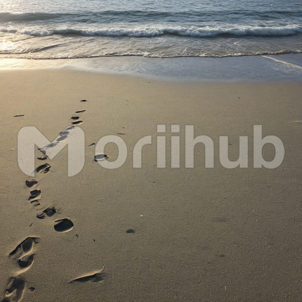 The sand beach stretches endlessly, golden grains shimmering under the sun. Waves gently kiss the shore, leaving a trail of foam. Seagulls glide above, and the salty breeze fills the air, creating a peaceful, serene atmosphere where the horizon meets the endless blue sky.