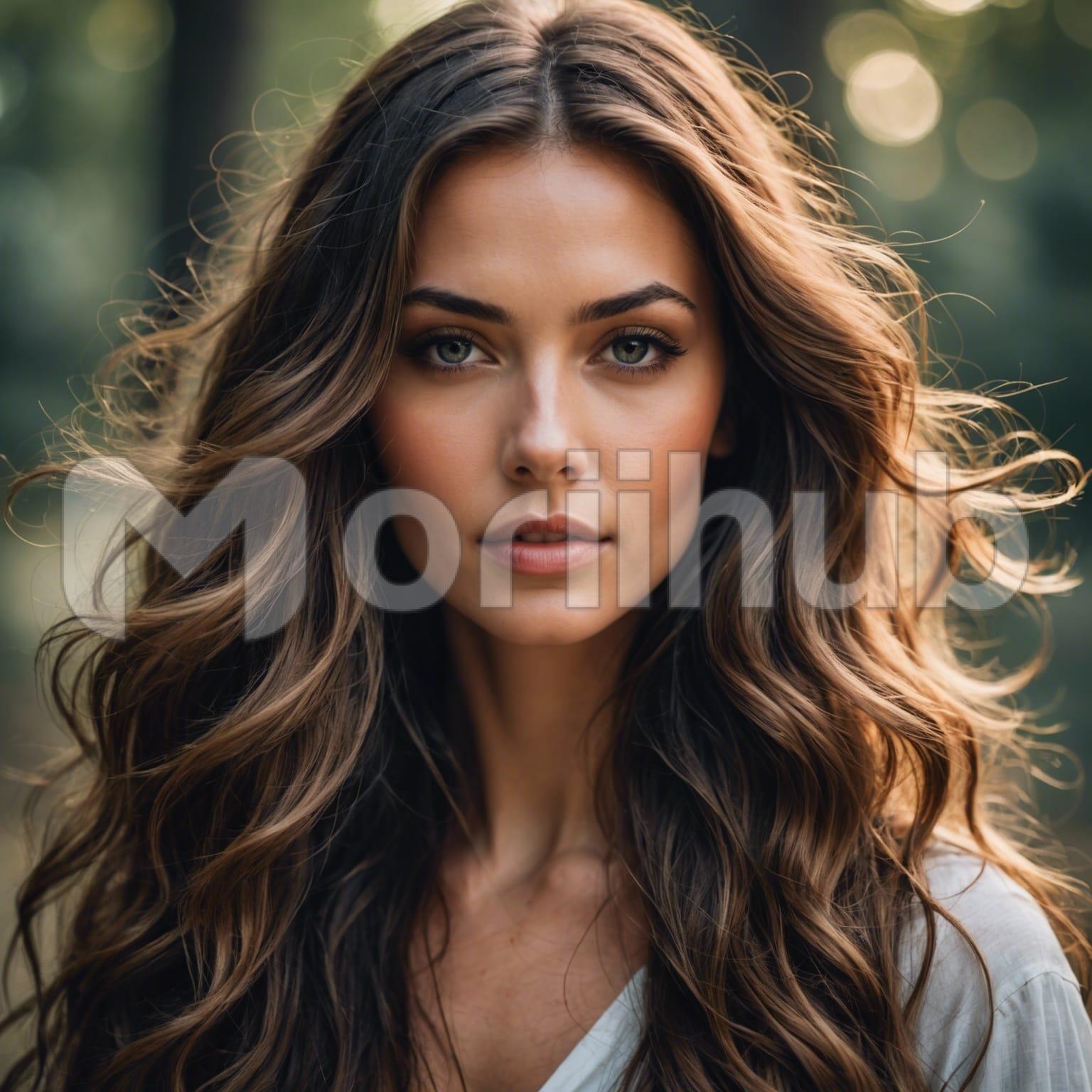 A stunning woman stands gracefully, her long hair cascading in soft waves down her back. Her gaze is directed forward, eyes filled with a quiet confidence and serene depth. Her features are elegantly sculpted, with high cheekbones and a composed expression. The simplicity of her posture and the natural flow of her hair highlight her timeless beauty. The background is understated, ensuring all attention remains on her. Her presence exudes a blend of strength and elegance, capturing the viewer’s admiration effortlessly.