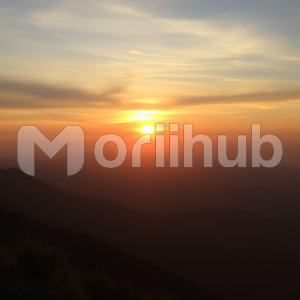 The sunset settles over a wide stretch of hazy terrain, its light muted as it filters through the lingering mist. The landscape below appears softened, distant forms partially obscured. Gentle slopes rise and fall in the background, outlines faint against the dimming sky. The clouds above catch the last of the light, their shapes blurred and uneven. Nothing moves quickly here—just a quiet view stretching on. The haze lingers low, clinging to the surface, making the terrain seem farther than it is, quiet under the weight of the fading day.